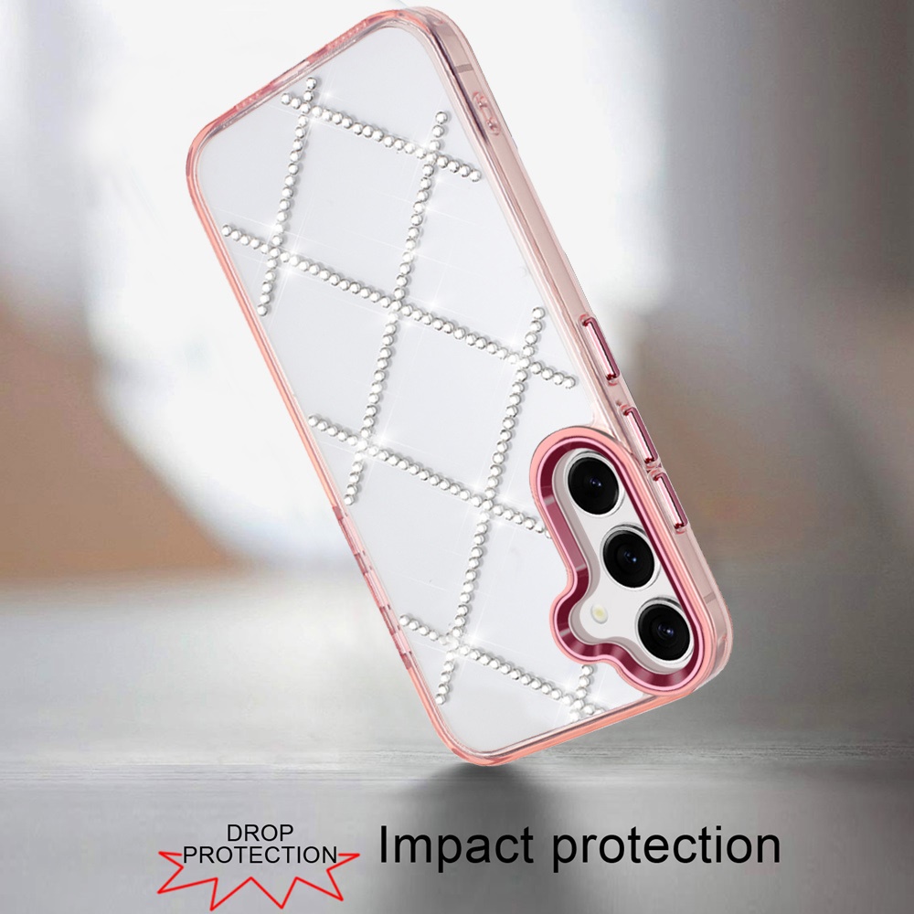 For Samsung s26 Gem Glitter Diamond Transparent Hard Colorful TPU Hybrid Case - Rose Gold