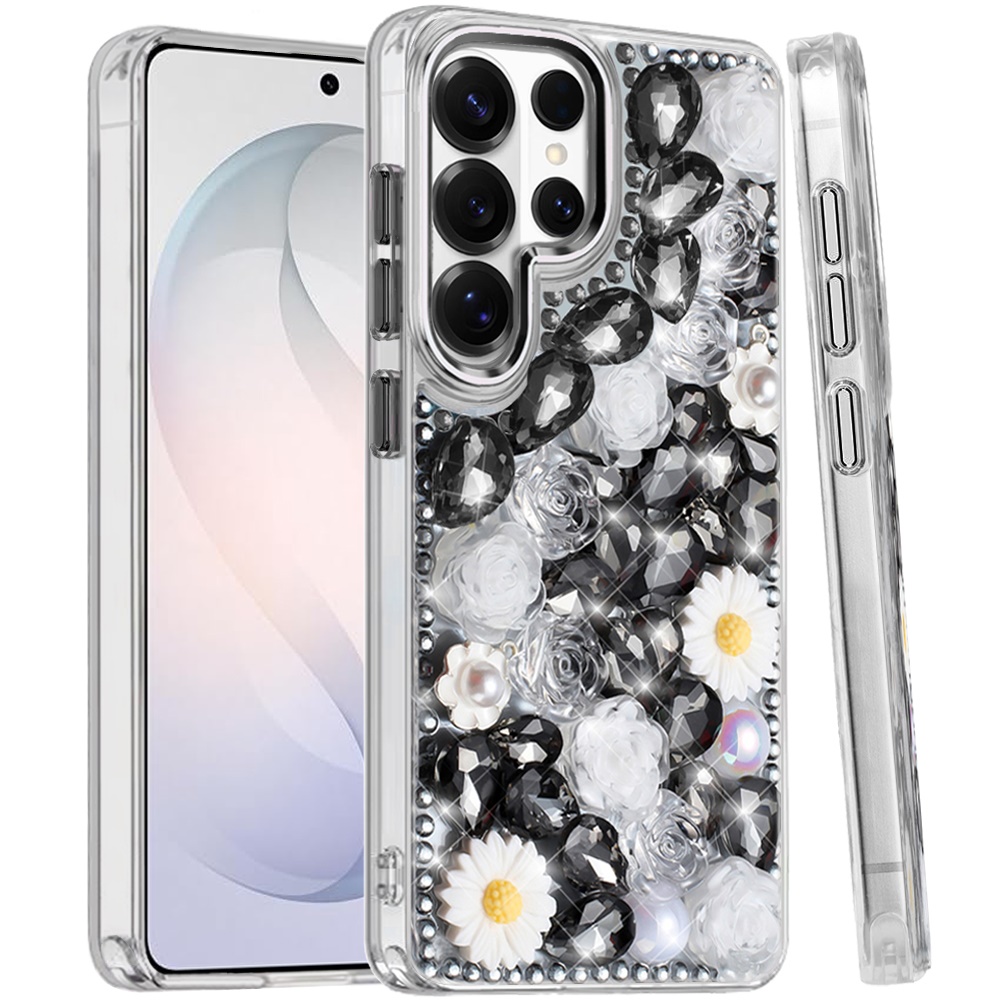 For Samsung s26 Ultra Spectacular Full Bling Stones Glitter HQ Hybrid Floral Series - Black
