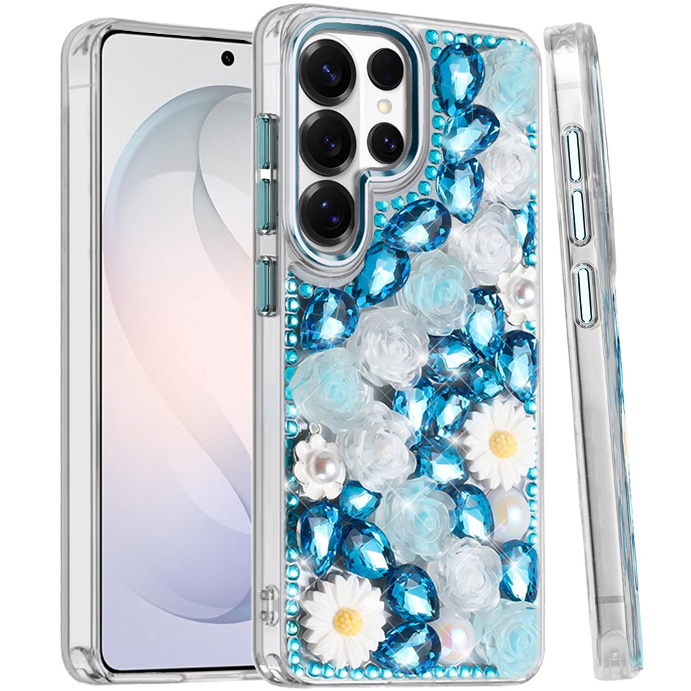 For Samsung s26 Ultra Spectacular Full Bling Stones Glitter HQ Hybrid Floral Series - Blue