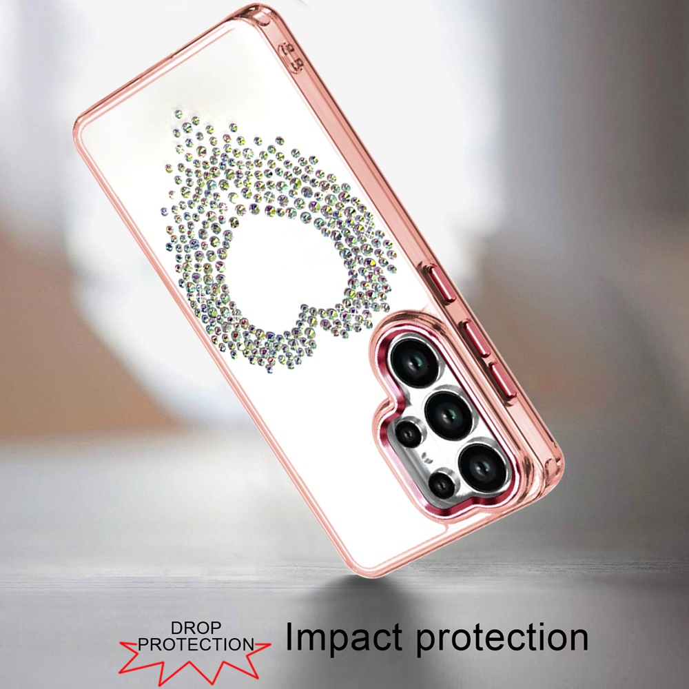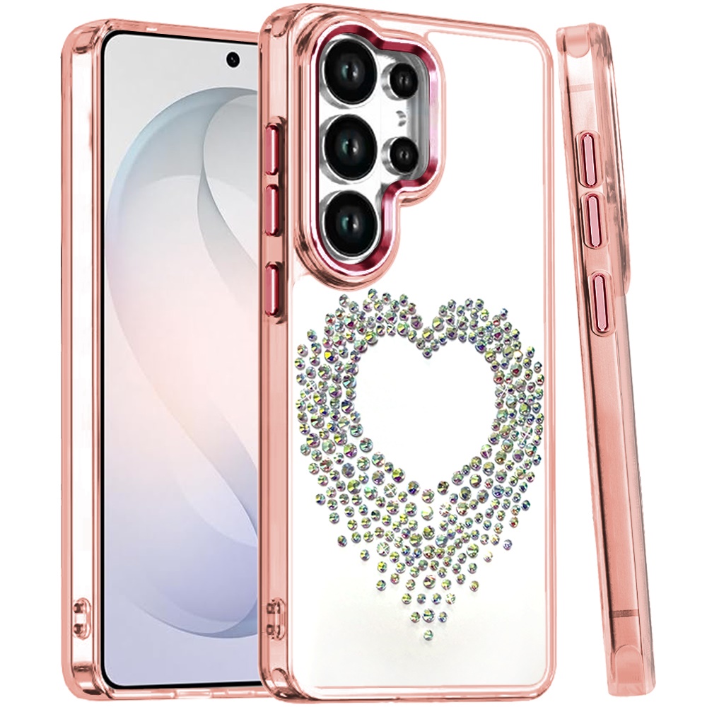For Samsung s26 Ultra Angel Hearts Bling Shimmer Colorful Glitter Chrome Edged Hybrid Case - Rose Gold