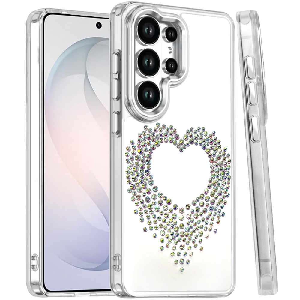 For Samsung s26 Ultra Angel Hearts Bling Shimmer Colorful Glitter Chrome Edged Hybrid Case - Silver