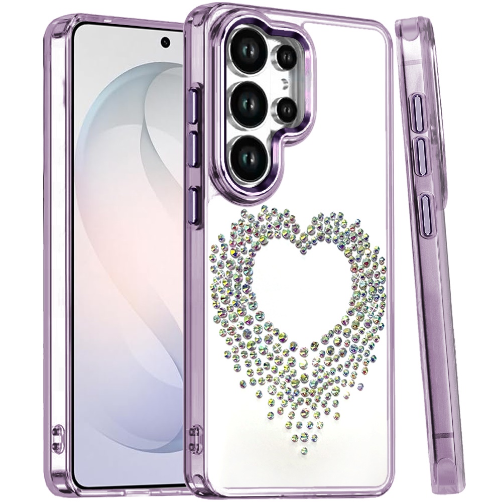 For Samsung s26 Ultra Angel Hearts Bling Shimmer Colorful Glitter Chrome Edged Hybrid Case - Purple
