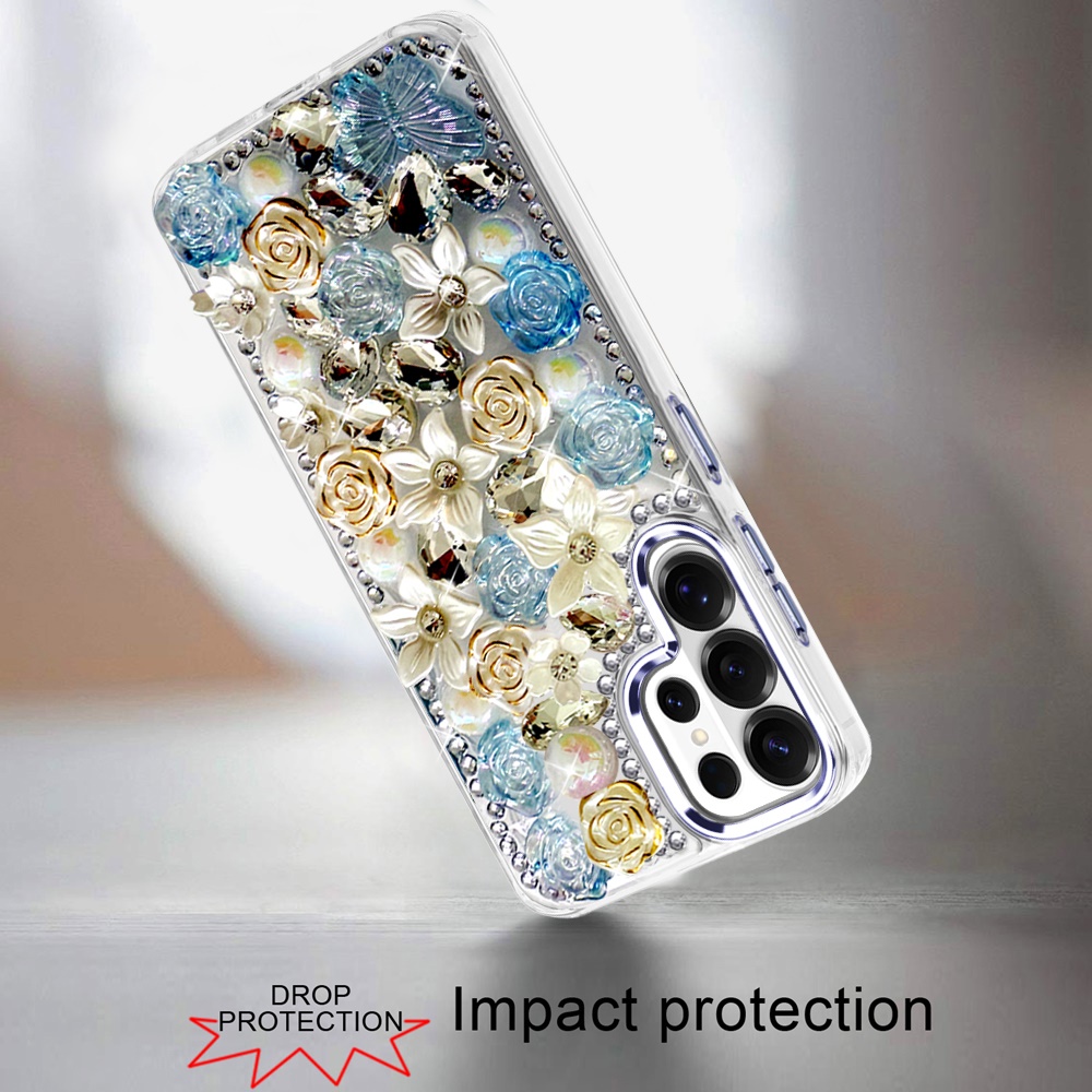 For Samsung s26 Ultra Muti-Color Rose Bling Stones Ornaments Case - Blue