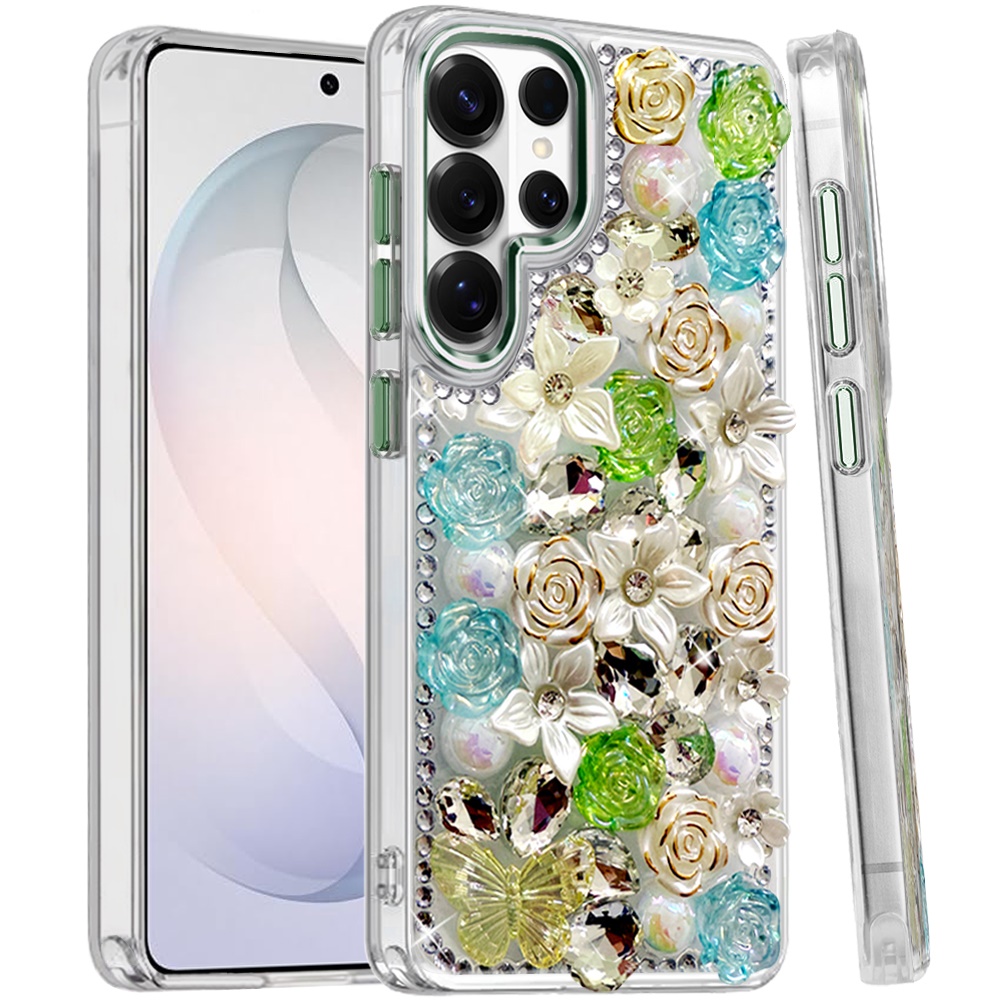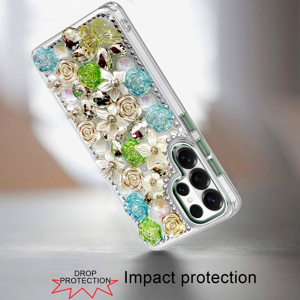 For Samsung s26 Ultra Muti-Color Rose Bling Stones Ornaments Case - Green