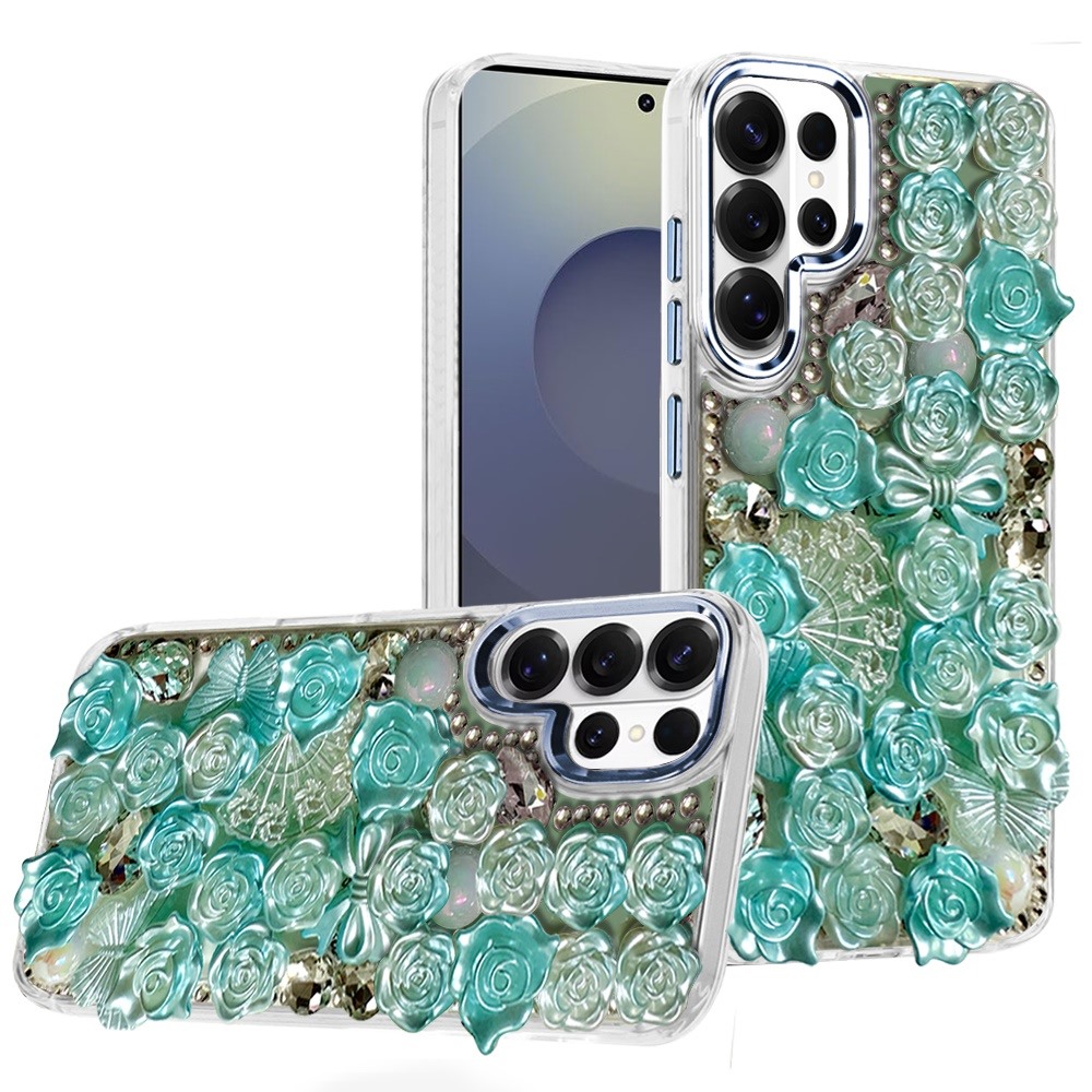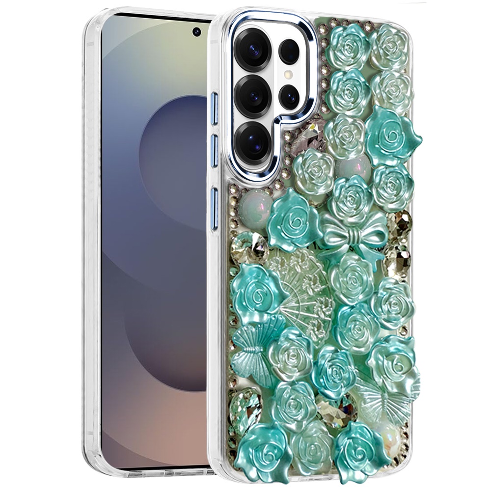 For Samsung s26 Ultra Muti-Color Floral Bling Stones Ornaments Case - Blue