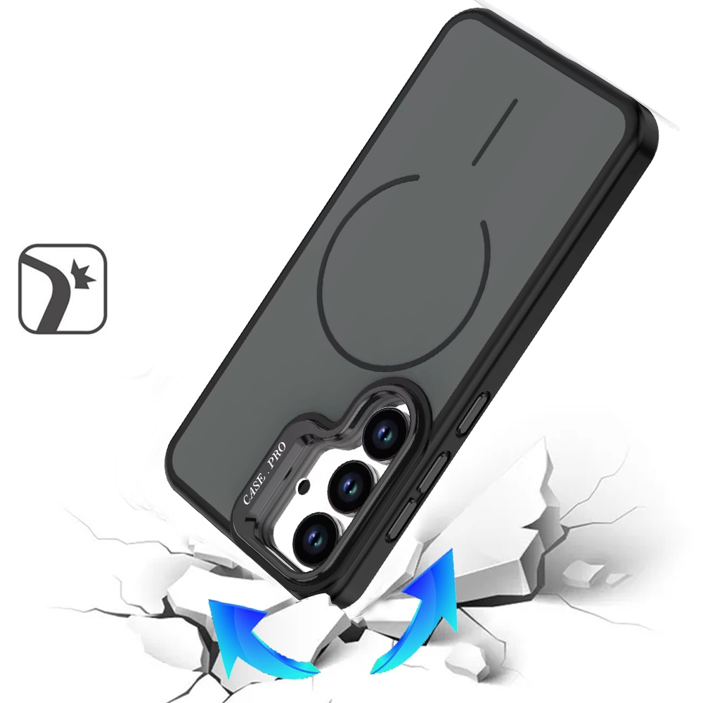 For Samsung s26 Magnetic Matte Camera Metallic Stand Hybrid Case - Black