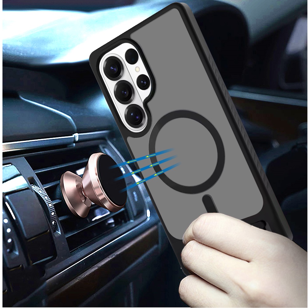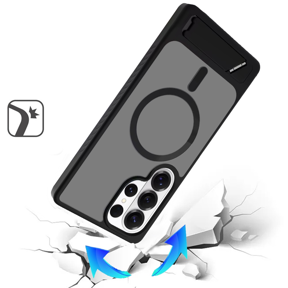 For Samsung s26 Ultra Matte Magnetic Hybrid with Metal Kickstand Case - Black