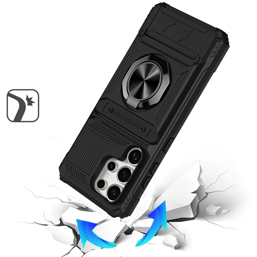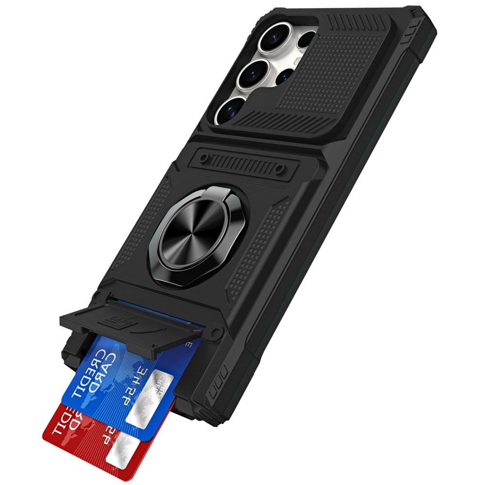 For Samsung s26 Ultra Multi-Functional 2X Card Slot Shockproof Metal Ring Hybrid Case - Black