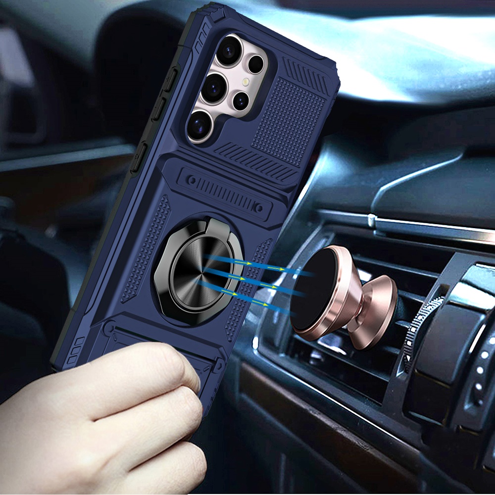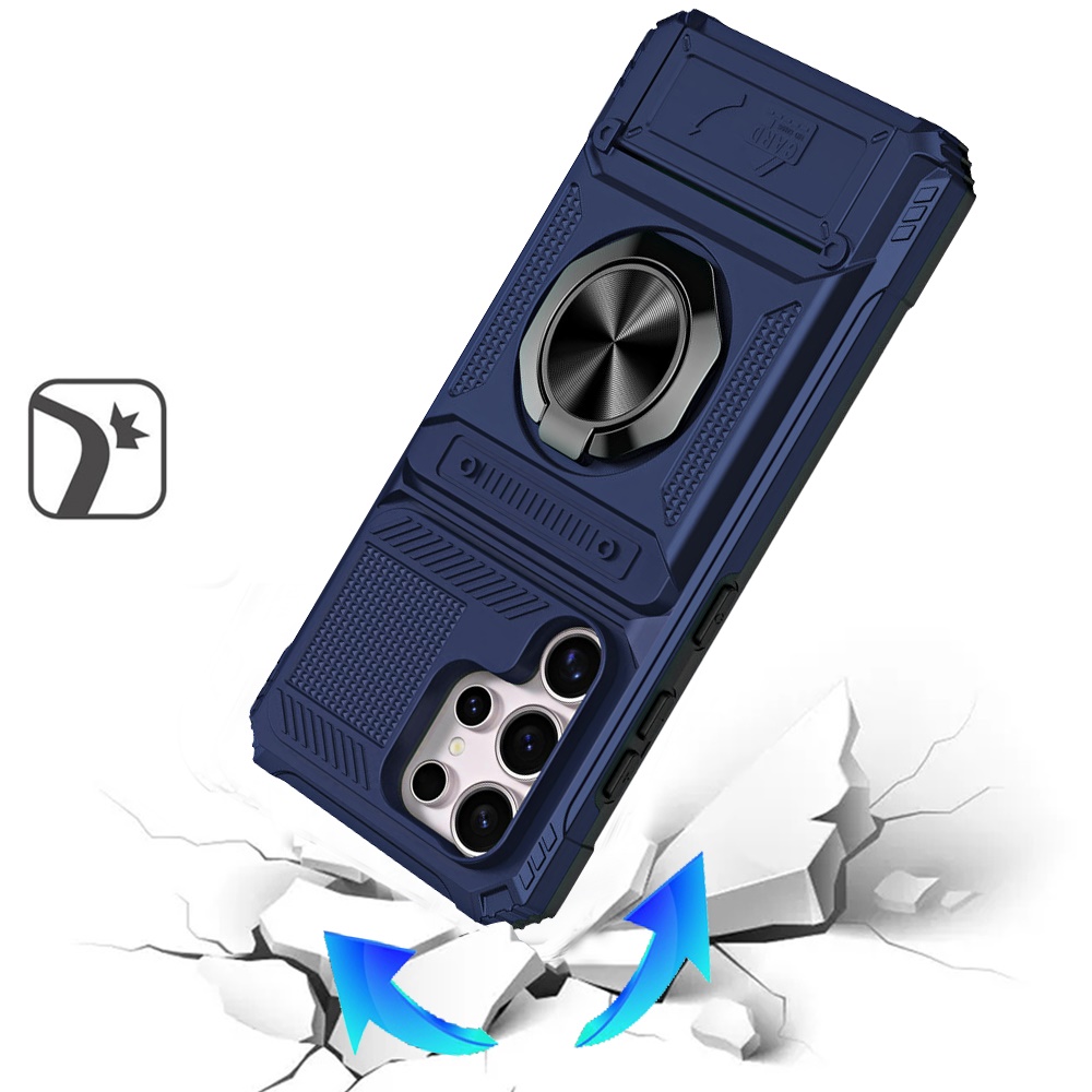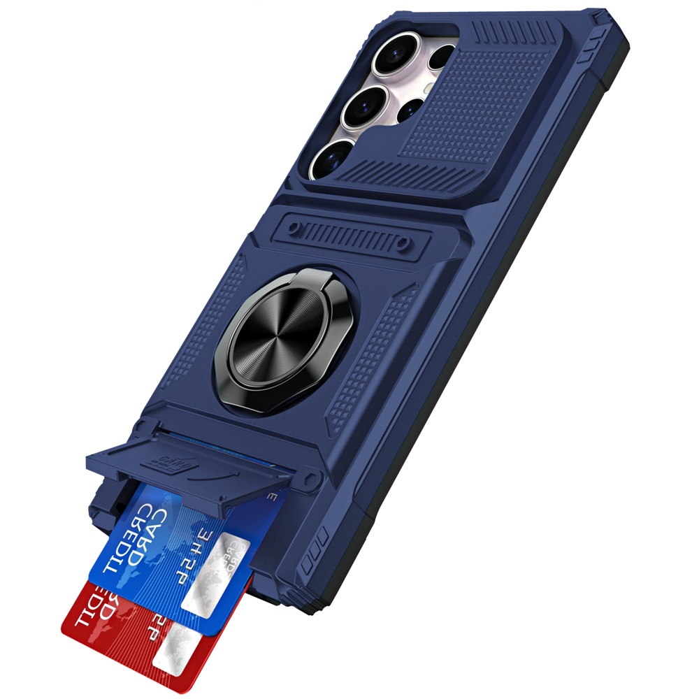 For Samsung s26 Ultra Multi-Functional 2X Card Slot Shockproof Metal Ring Hybrid Case - Blue