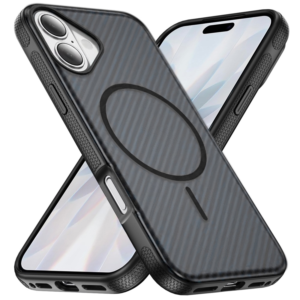 For iPhone 17 Thick Carbon Design Magnetic Hybrid with Metallic Buttons Case - Black