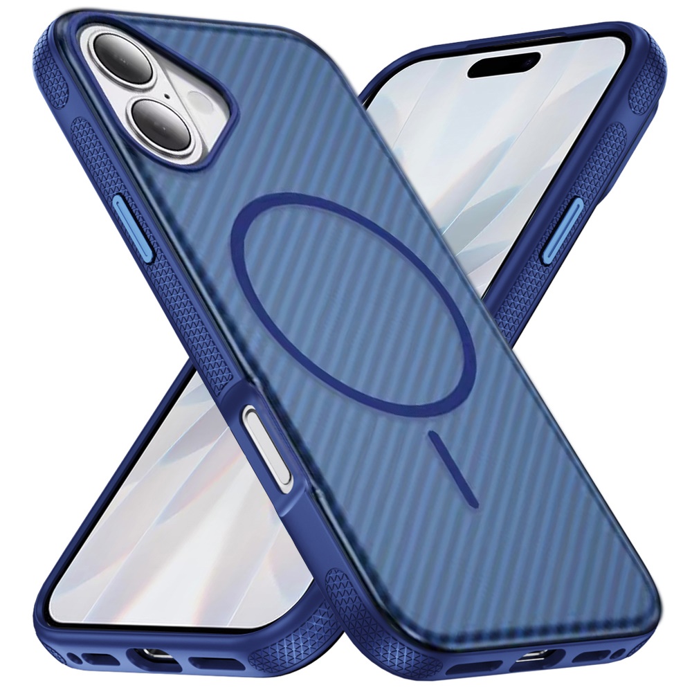 For iPhone 17 Thick Carbon Design Magnetic Hybrid with Metallic Buttons Case - Blue
