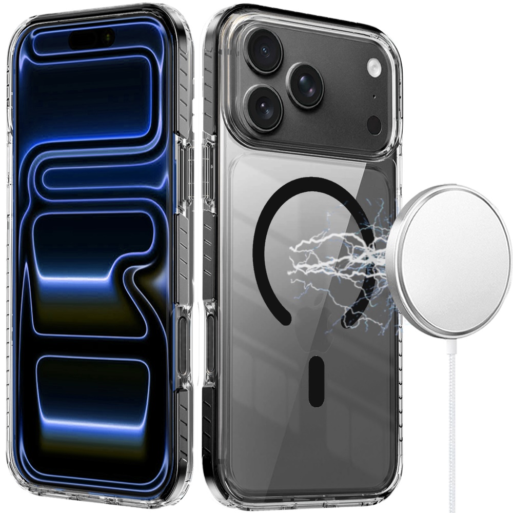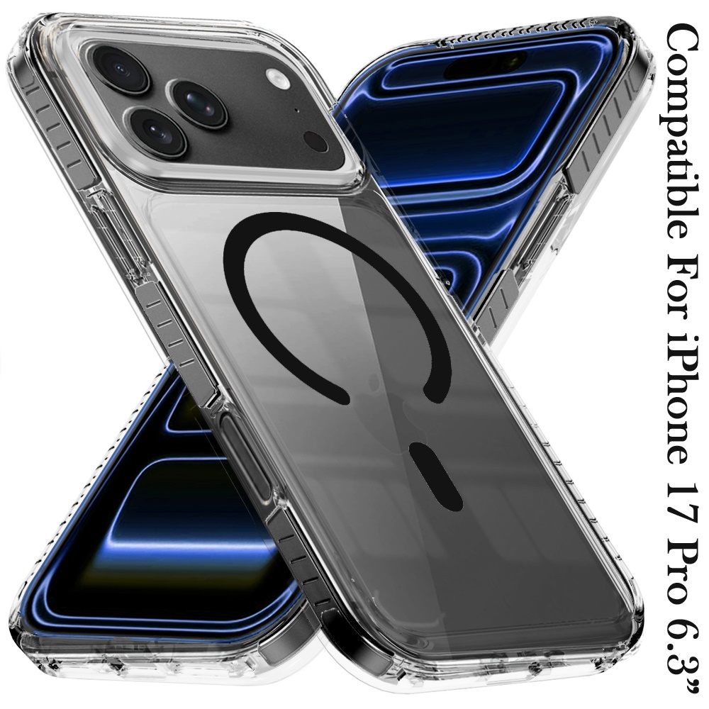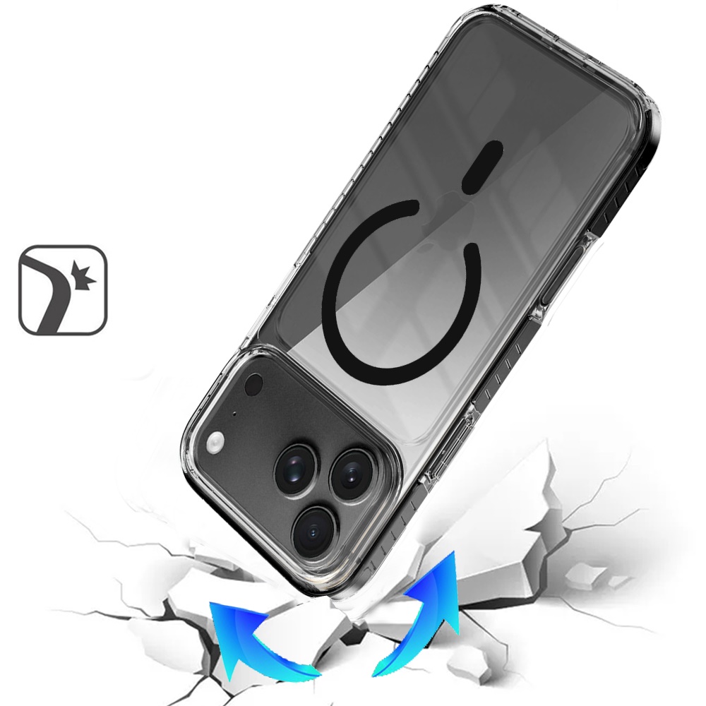 For iPhone 17 Pro Thick Transparent Colored Edged Magnetic Hybrid Case - Black