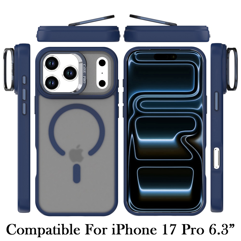 For iPhone 17 Pro Magnetic Matte Camera Metallic Stand Hybrid Case - Blue
