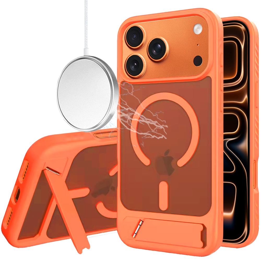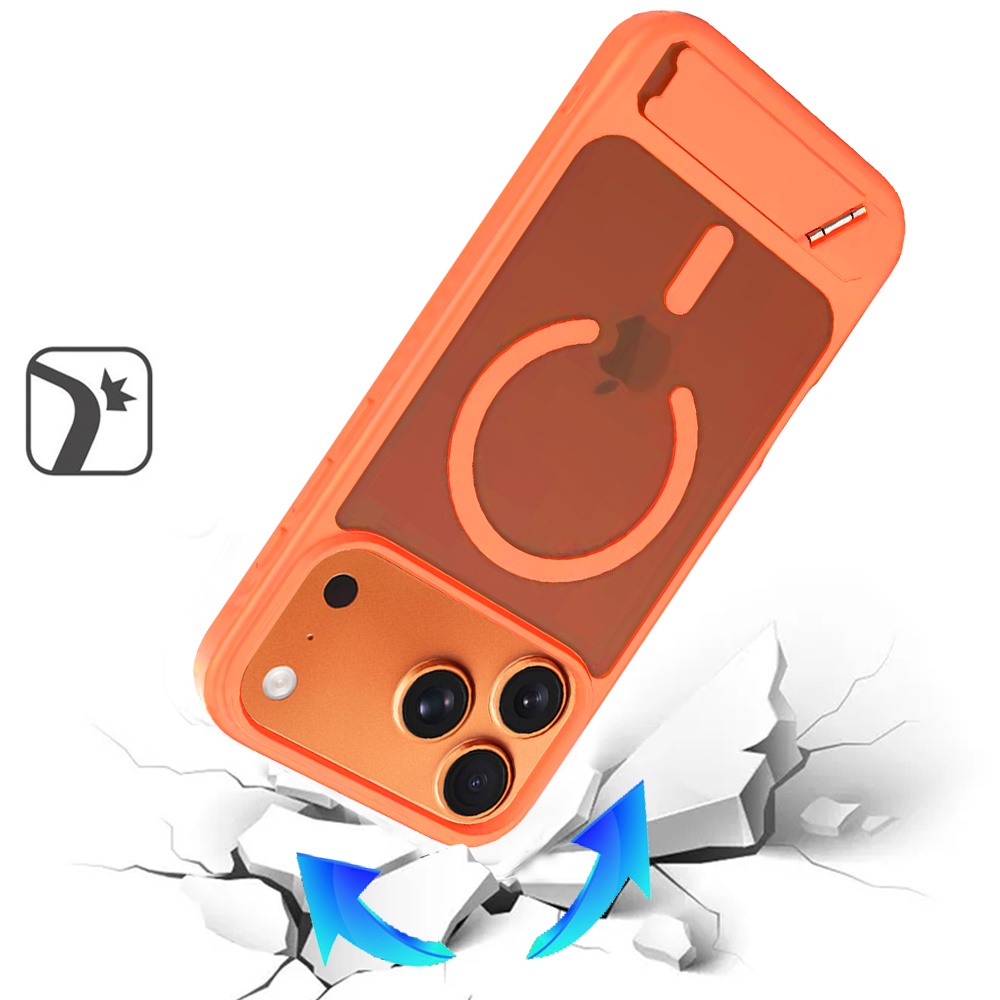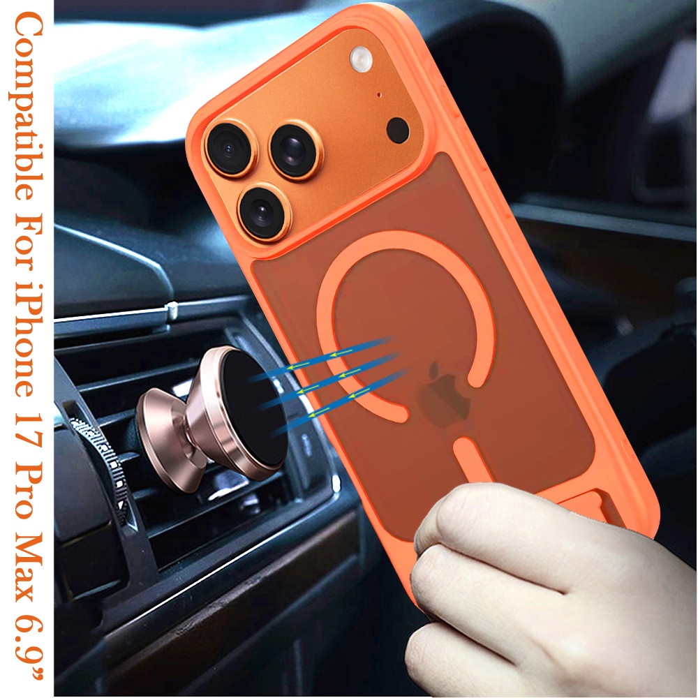 For iPhone 17 Pro Max Matte Magnetic Hybrid with Metal Kickstand Case - Cosmic Orange