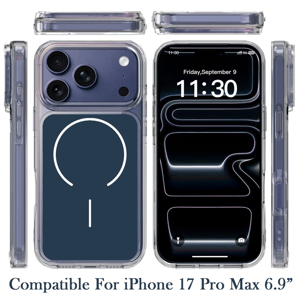 For iPhone 17 Pro Max Metallic Transparent Magnetic Hybrid Case - Navy Blue