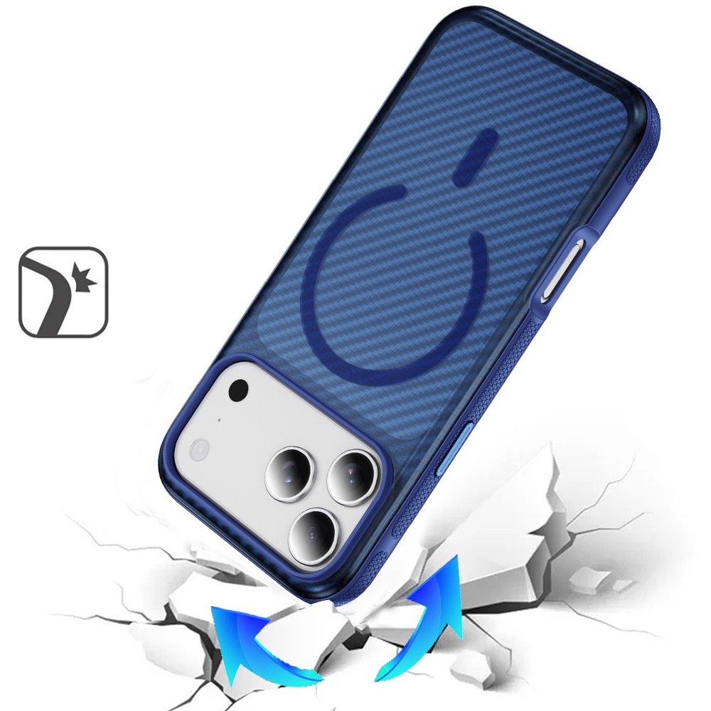 For iPhone 17 Pro Max Thick Carbon Design Magnetic Hybrid with Metallic Buttons Case - Blue