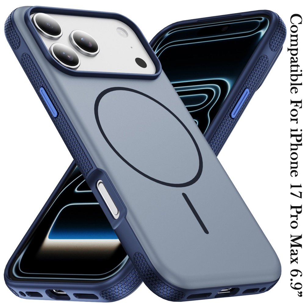 For iPhone 17 Pro Max Premium Edged Core Matte Thick Super Magnetic Hybrid Case - Navy Blue