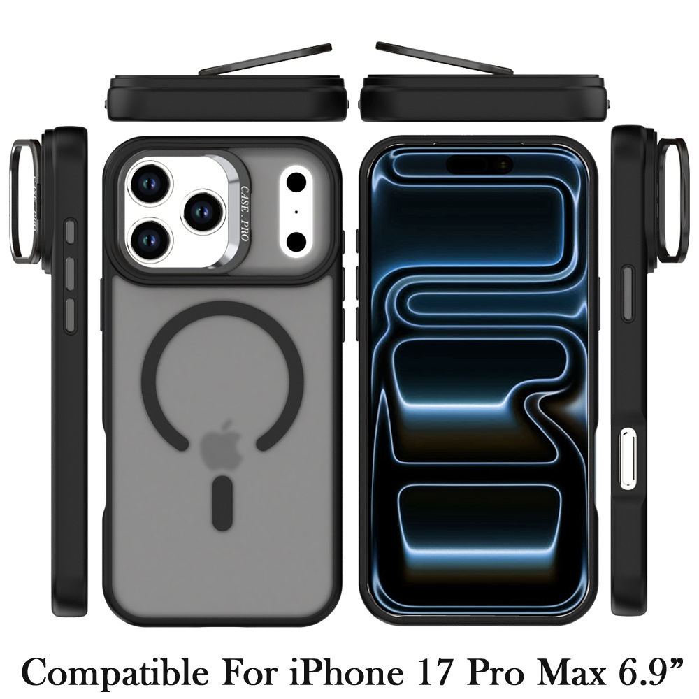 For iPhone 17 Pro Max Magnetic Matte Camera Metallic Stand Hybrid Case - Black