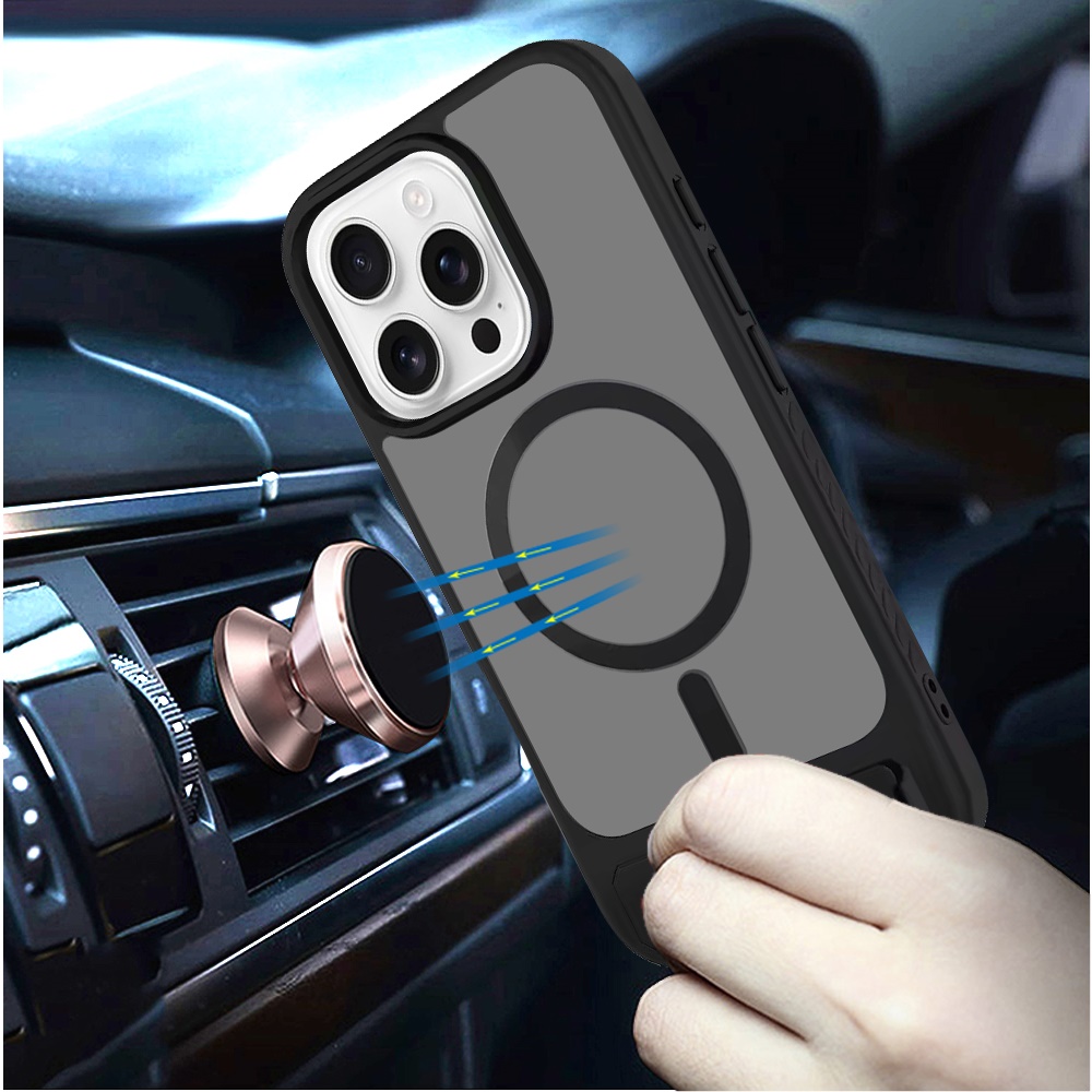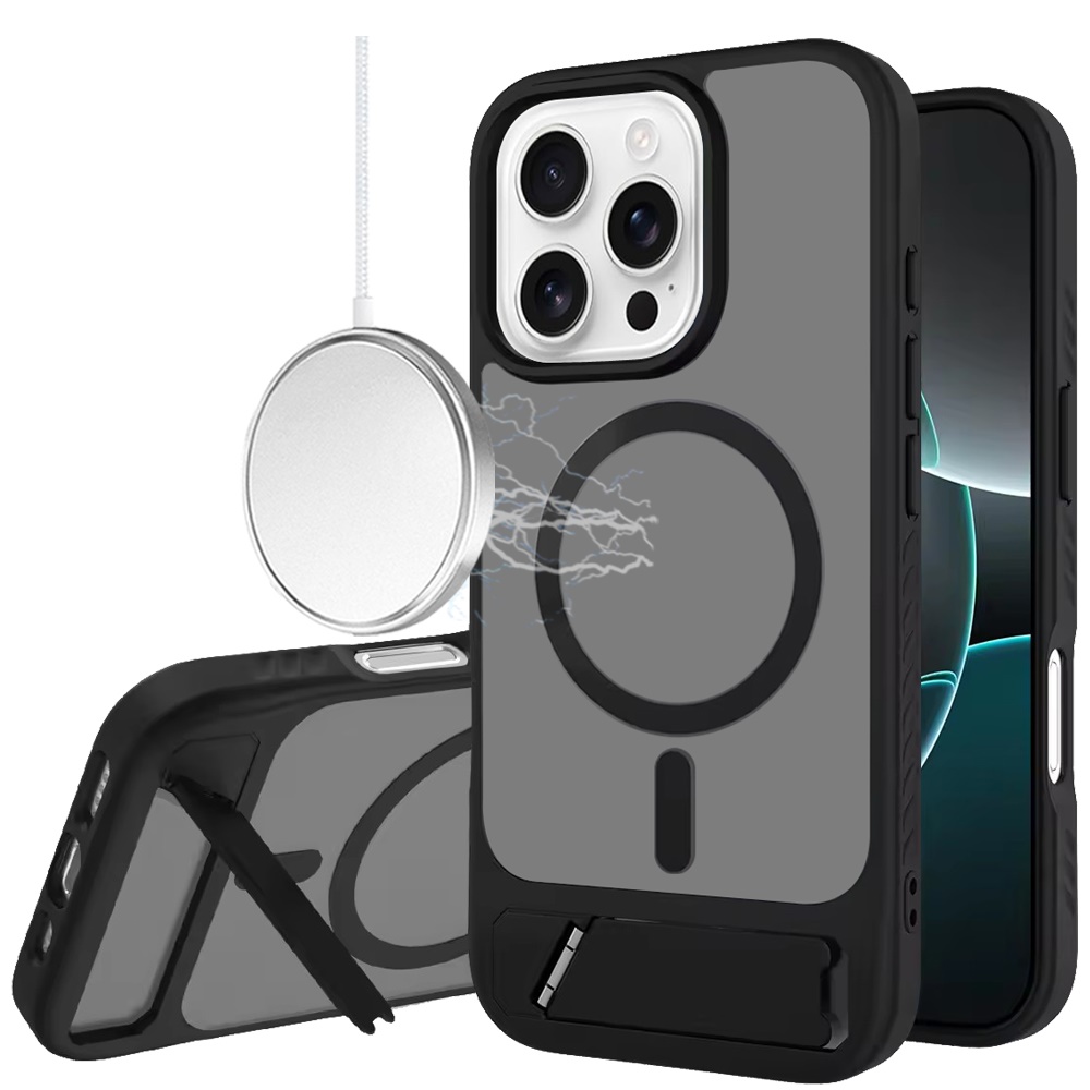 For iPhone 16 Pro Max 6.9 Matte Magnetic Hybrid with Metal Kickstand Case - Black