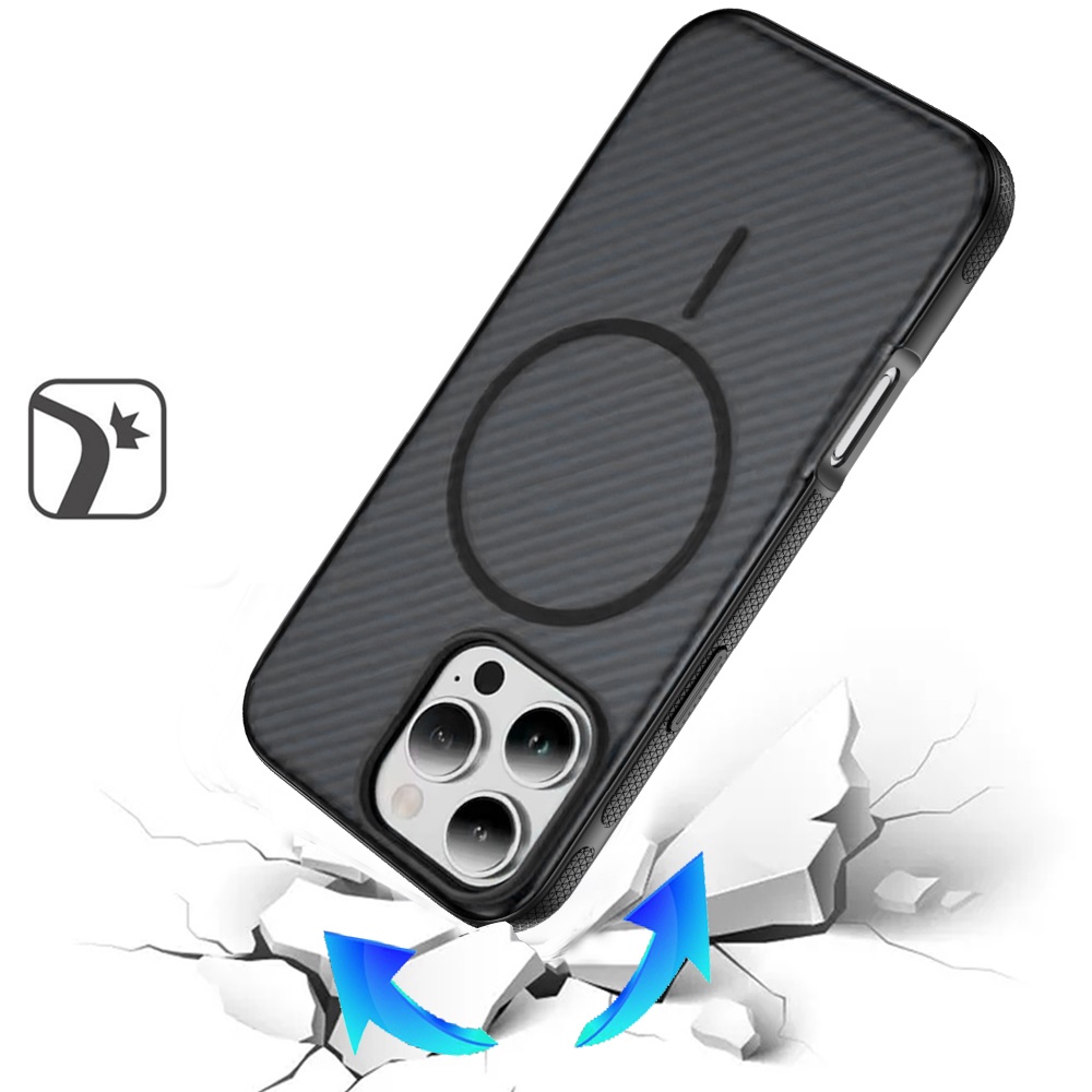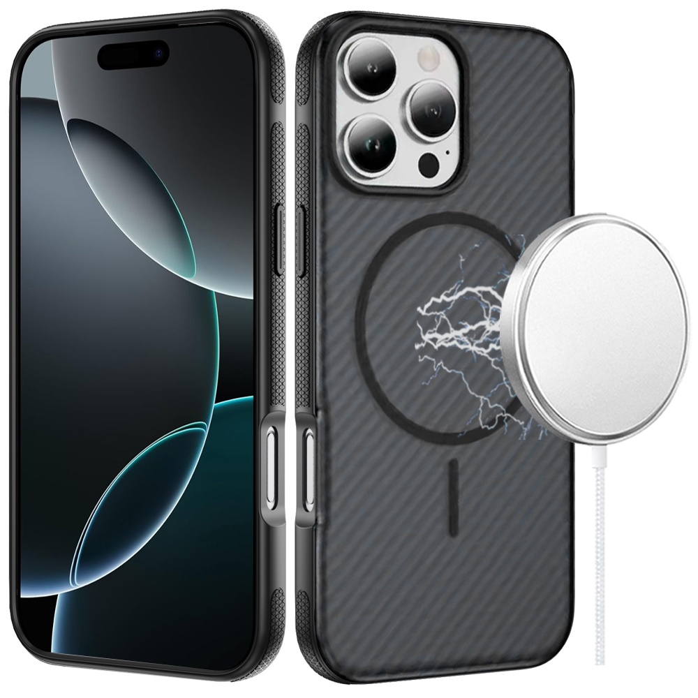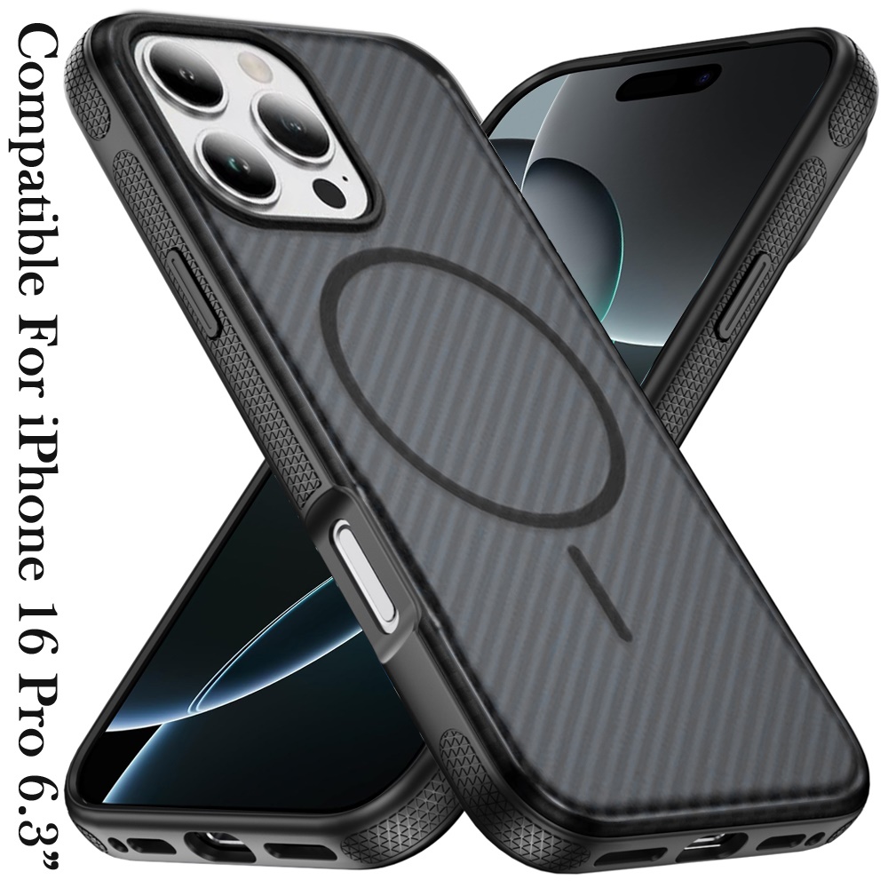For iPhone 16 Pro Max 6.9 Thick Carbon Design Magnetic Hybrid with Metallic Buttons Case - Black