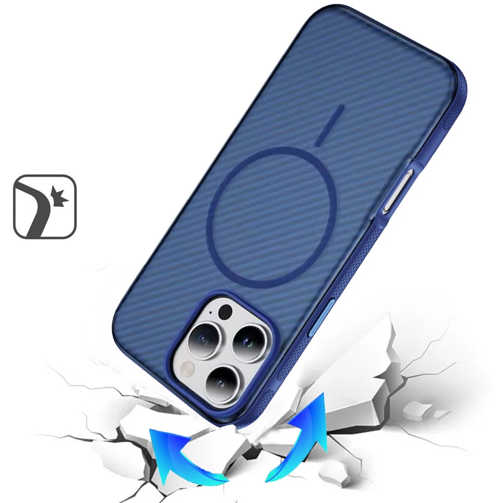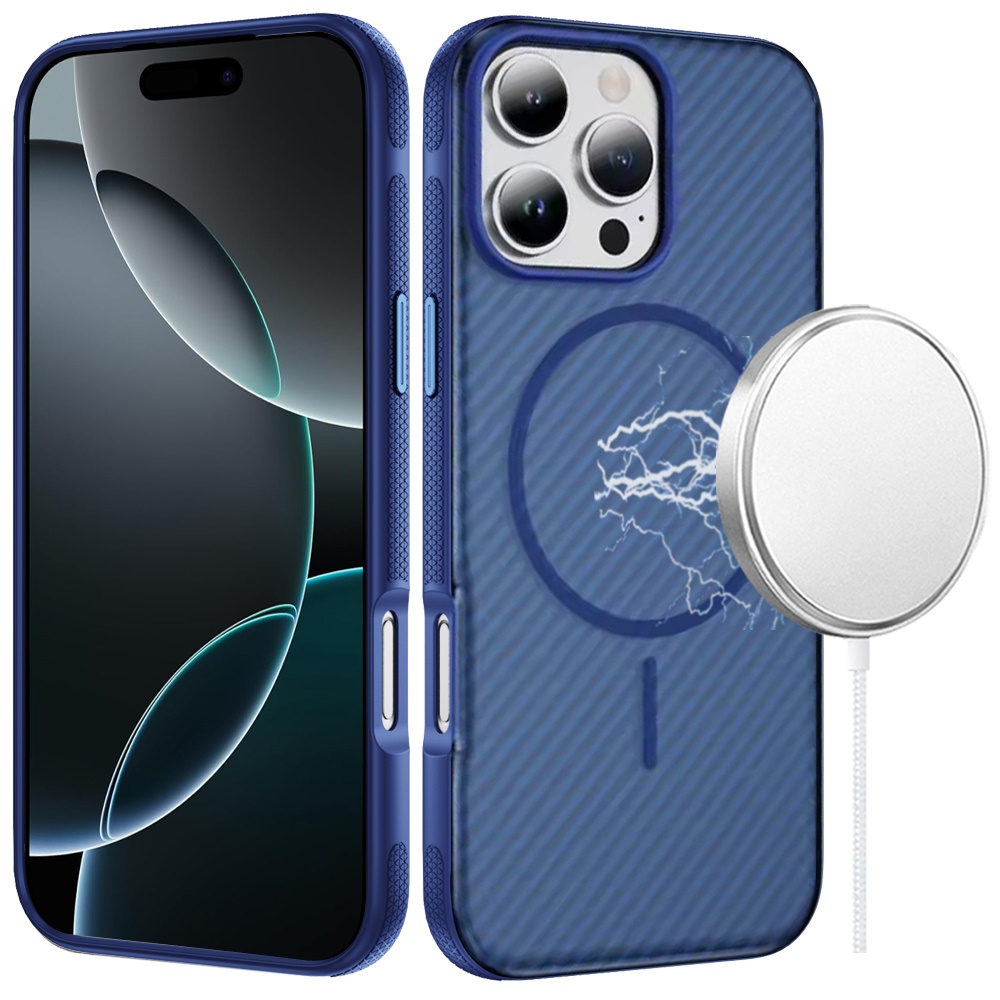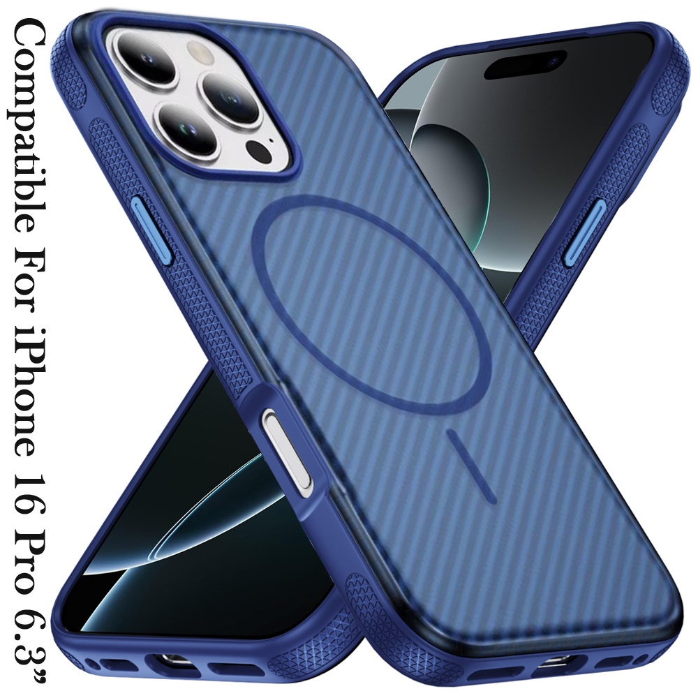 For iPhone 16 Pro Max 6.9 Thick Carbon Design Magnetic Hybrid with Metallic Buttons Case - Blue