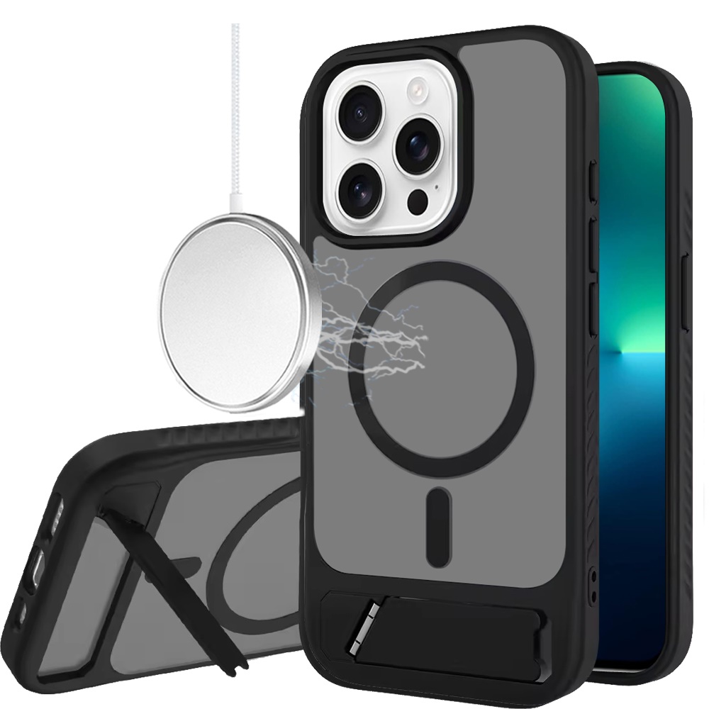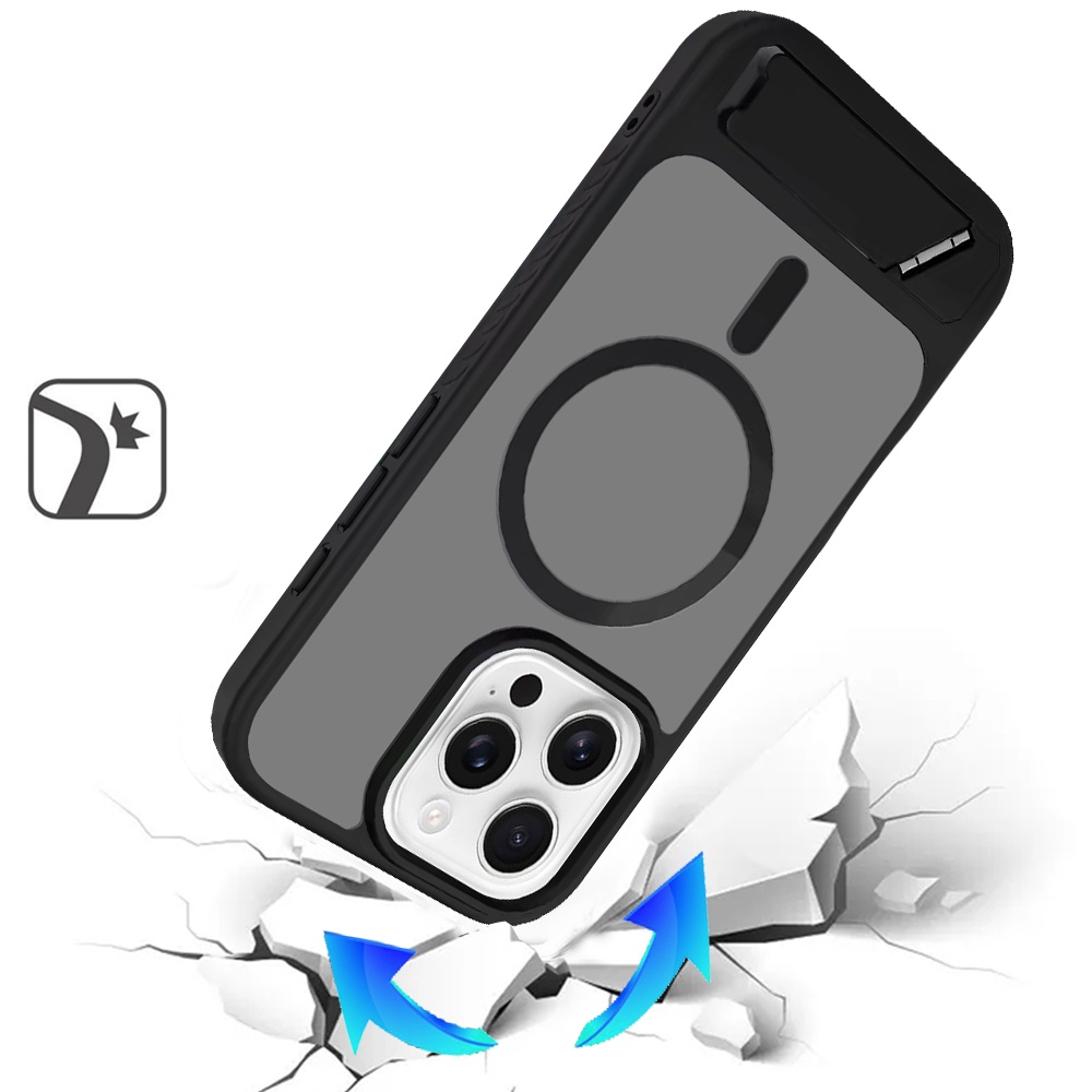 For iPhone 13 Pro Max Matte Magnetic Hybrid with Metal Kickstand Case - Black