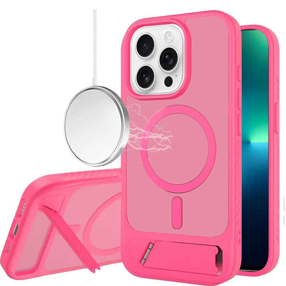 For iPhone 13 Pro Max Matte Magnetic Hybrid with Metal Kickstand Case - Hot Pink