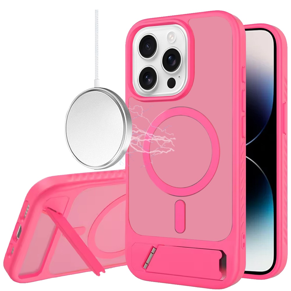 For iPhone 14 PRO MAX 6.7" Matte Magnetic Hybrid with Metal Kickstand Case - Hot Pink