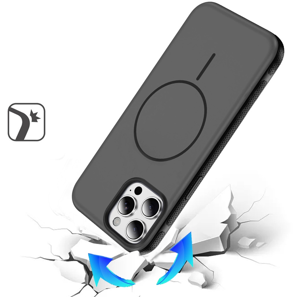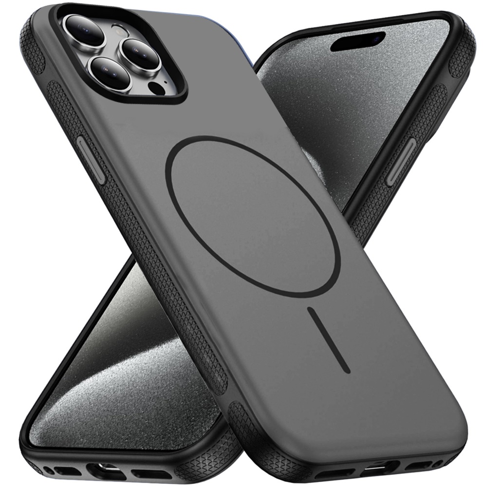 For iP15 Pro Max Premium Edged Core Matte Thick Super Magnetic Hybrid Case - Black