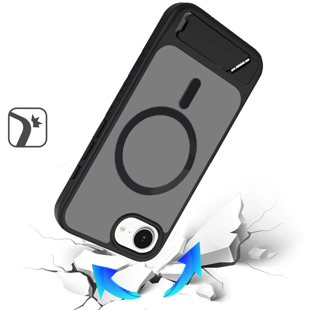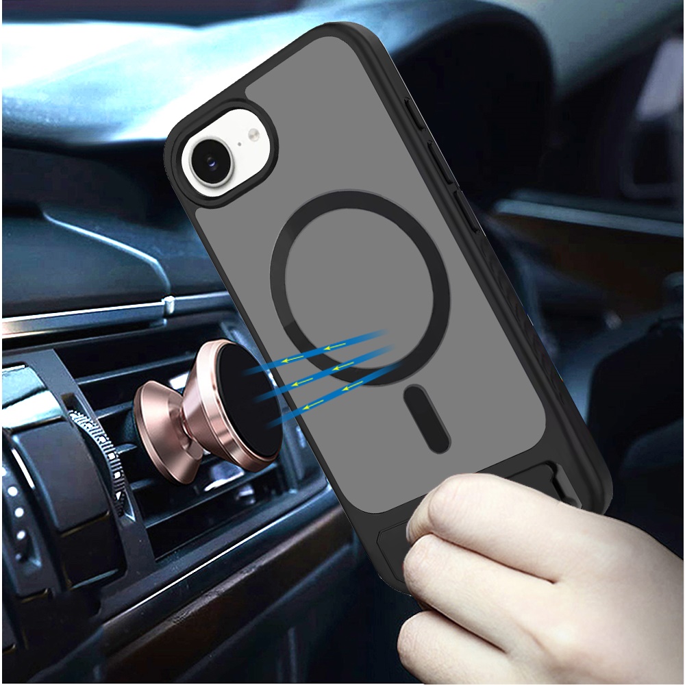 For iPhone 16E (E edition) / SE4 (2025) Matte Magnetic Hybrid with Metal Kickstand Case - Black