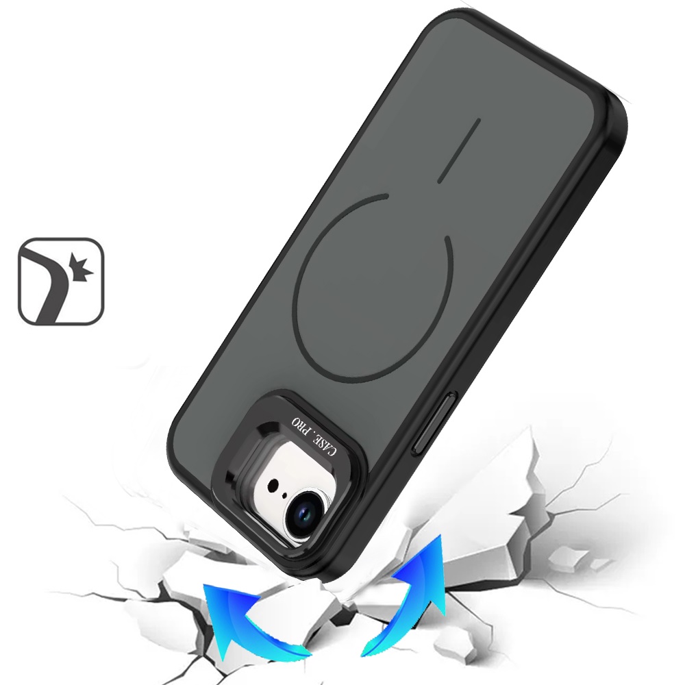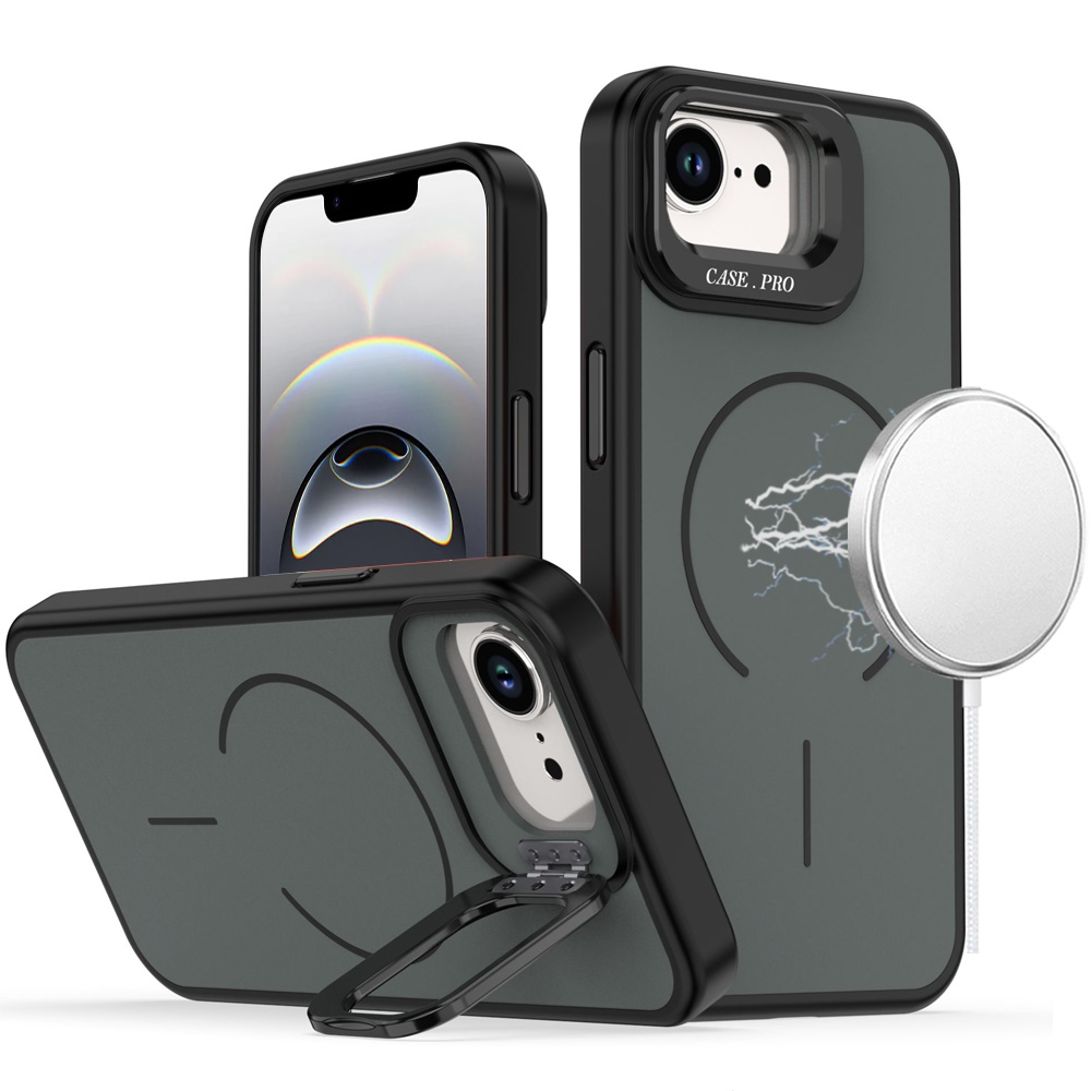 For iPhone 16E (E edition) / SE4 (2025) Magnetic Matte Camera Metallic Stand Hybrid Case - Black
