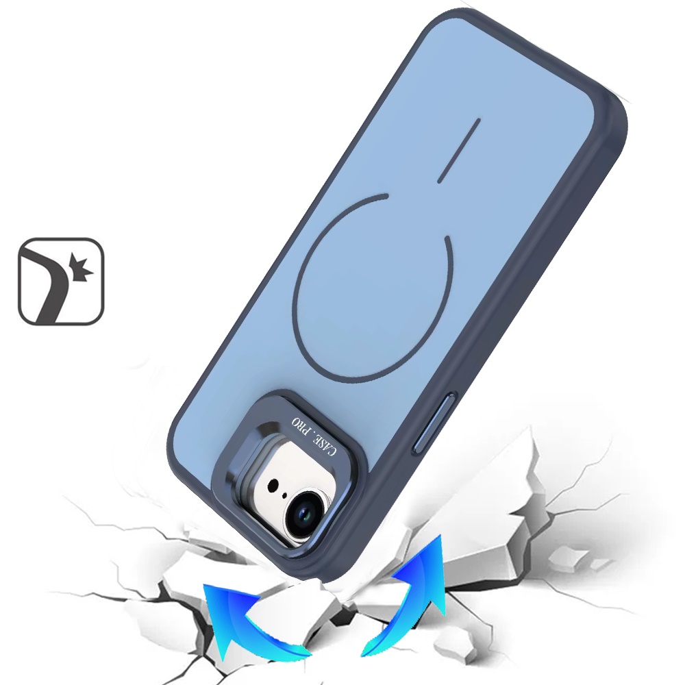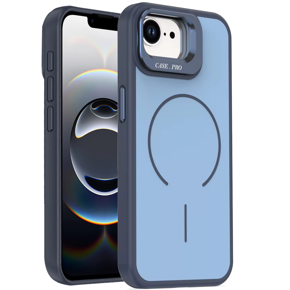 For iPhone 16E (E edition) / SE4 (2025) Magnetic Matte Camera Metallic Stand Hybrid Case - Blue
