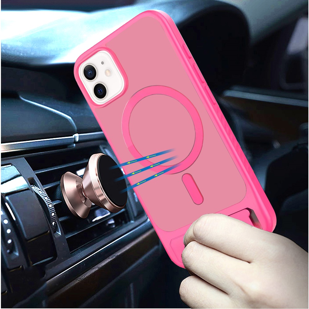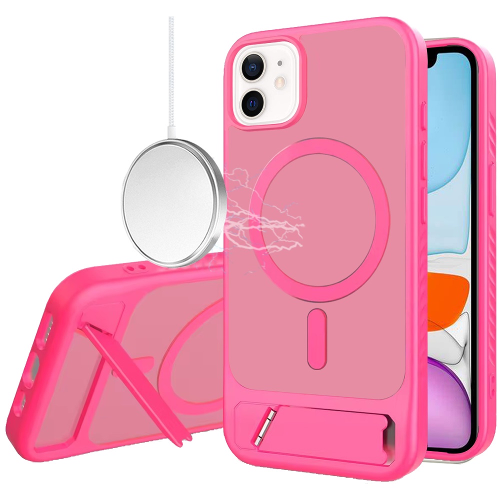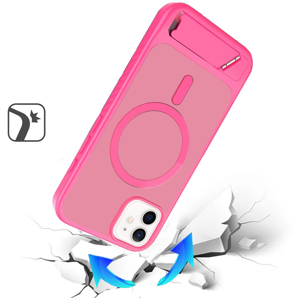 For iPhone 11 (XI6.1) Matte Magnetic Hybrid with Metal Kickstand Case - Hot Pink