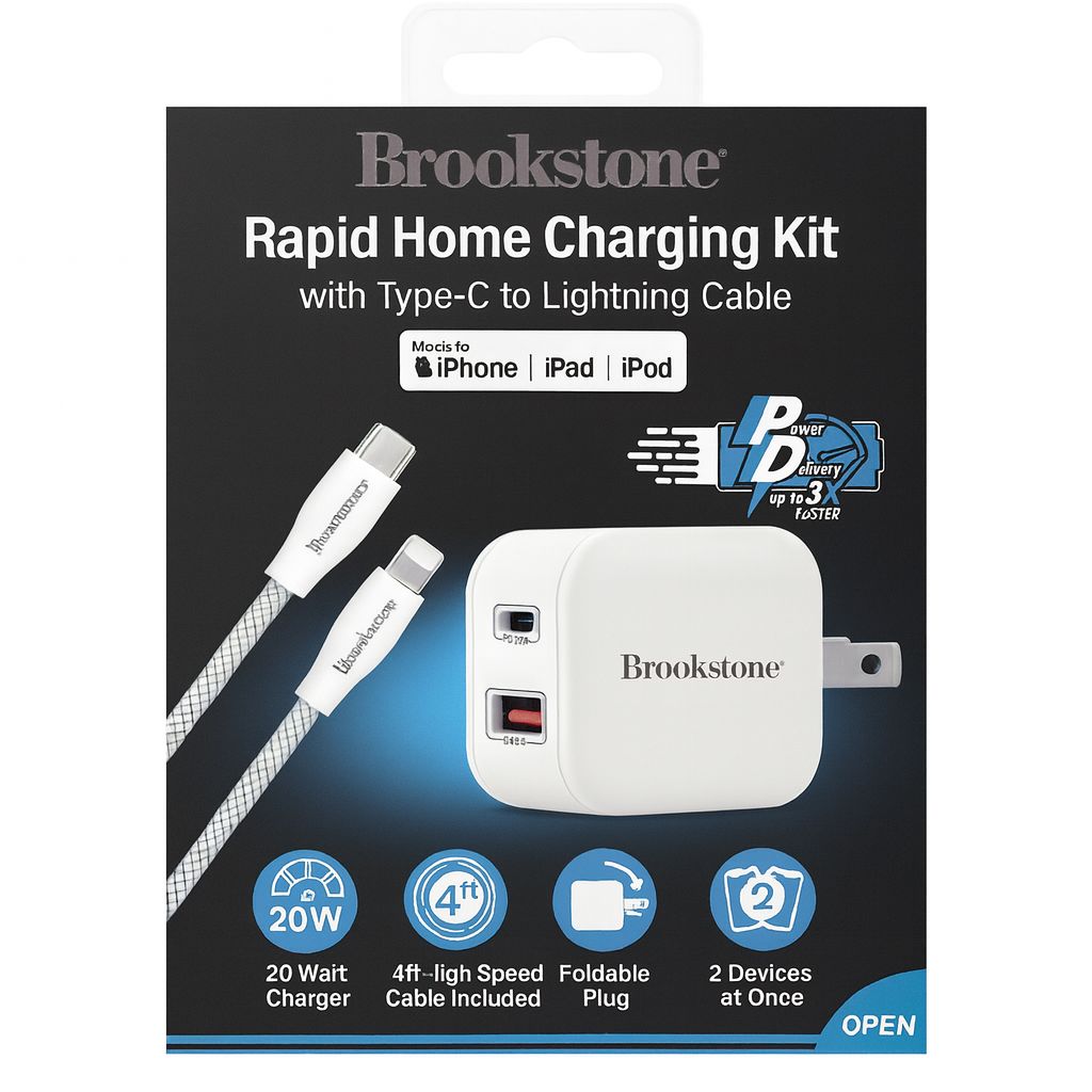 Brookstone Rapid Home Charging Kit 20WATT with TYPE-C TO Lighting Cable - Certified - White (BK11-KLF20-WT) (D11 BROOKSTONE#12)