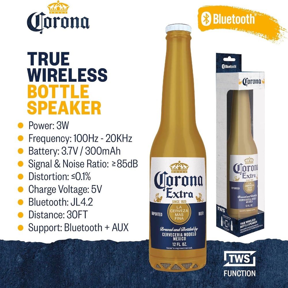 Corona Bottle Bluetooth Speaker - Wireless Portable Bluetooth Speaker with 3W Output, 300mAh Battery, AUX Input and 3-Hour Play Time - Waterproof Speakers for Outdoor & Indoor Activities (LANE ASK)