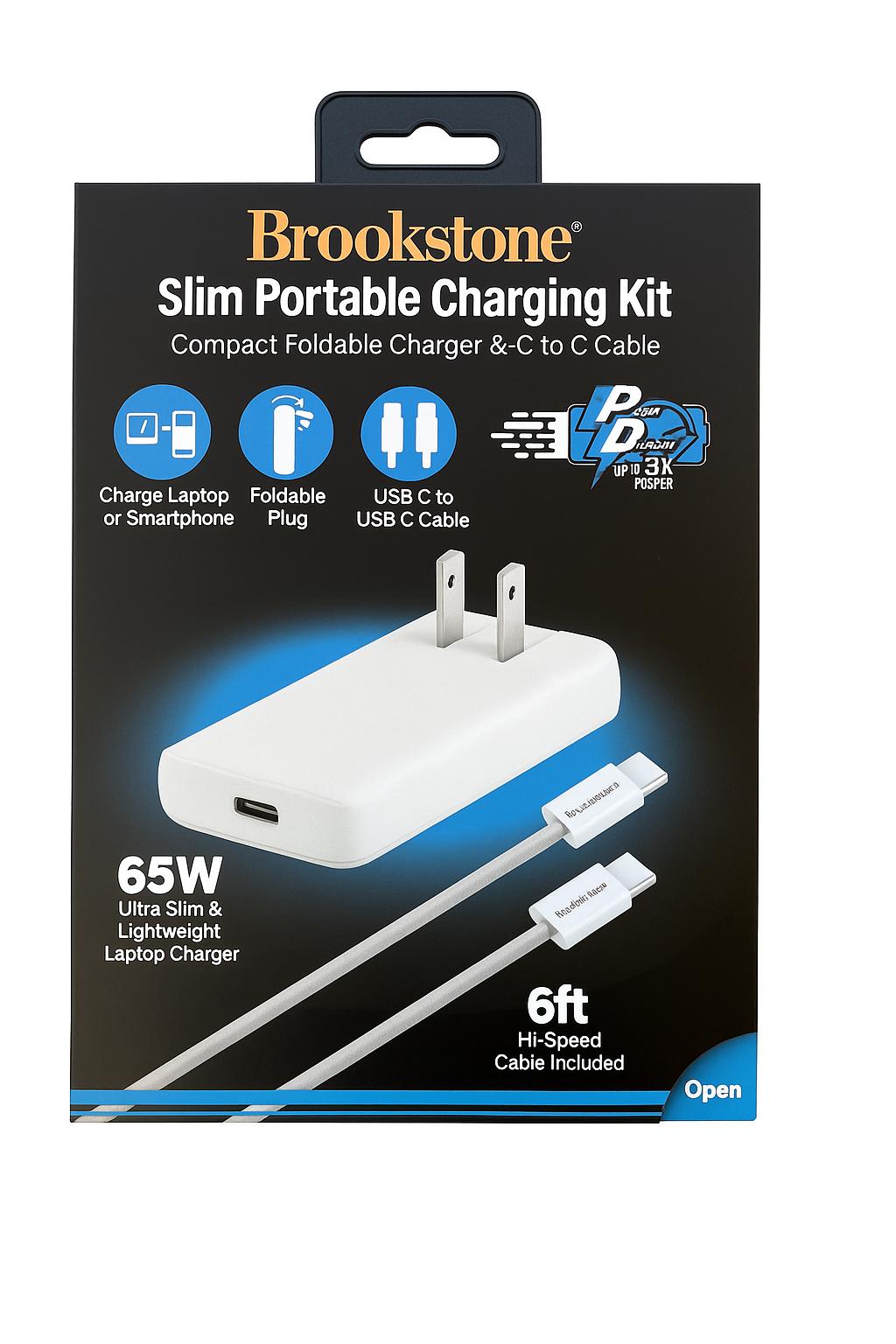 BROOKSTONE SLIM PORTABLE CHARGING KIT FOR LAPTOP/SMARTPHONE WITH C TO C CABLE - 65W - BK11-K65LM-WT - WHITE (D11 BROOKSTONE#13)