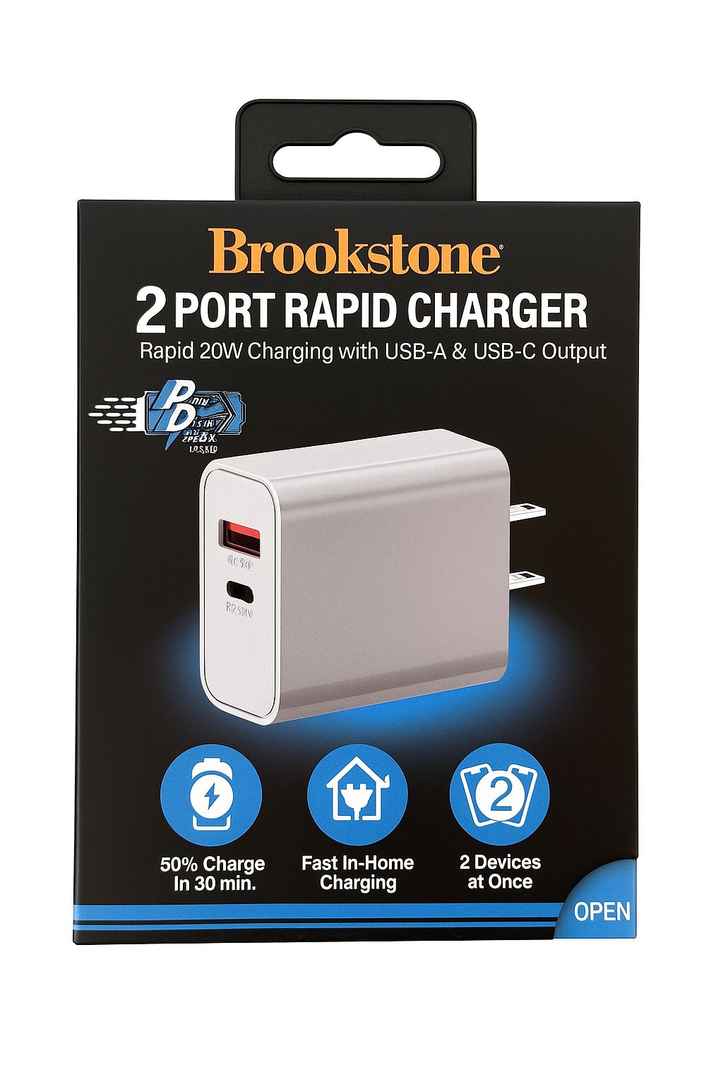 BROOKSTONE 20W 2 PORT RAPID CHARGER WITH USB-A &USB C OUTPUT - BK11-PD20-WT - WHITE(D10 BROOKSTONE#20)