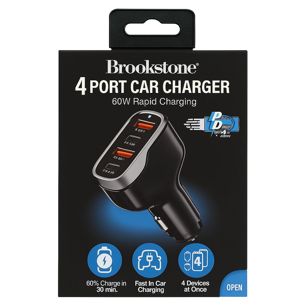 BROOKSTONE 60W 4 PORT CAR CHARGER - RAPID CHARGING - 2 30W C OUTPUT AND 2 QC3.0 OUTPUT - BK12-4P60-BKS - BLACKSILVER (D9 BROOKSTONE#28)