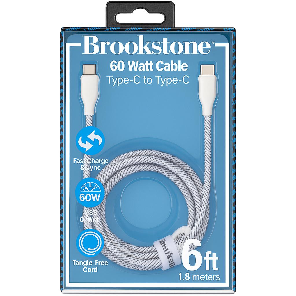 BROOKSTONE 60WATT TYPE-C TO TYPE-C CABLE - 6FEET - FAST CHARGE - TANGLE FREE - BRAIDED - WHITE - BK13-C6BSR-WT (D8 BROOKSTONE#33)