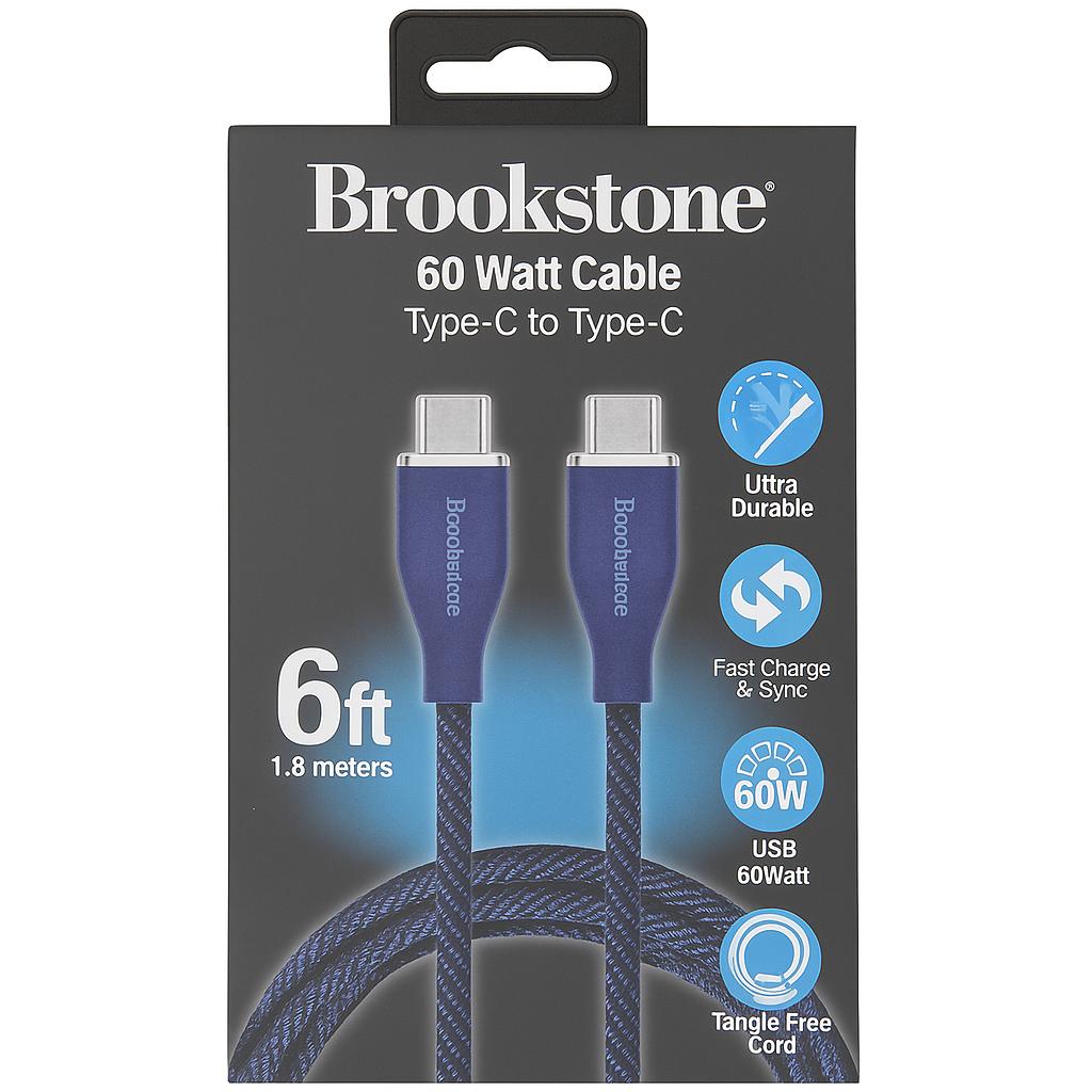 BROOKSTONE 60WATT TYPE-C TO TYPE-C CABLE - 6FEET - FAST CHARGE - TANGLE FREE - BRAIDED - NAVY BLUE - BK13-C6BSR-NV (D8 BROOKSTONE#34)