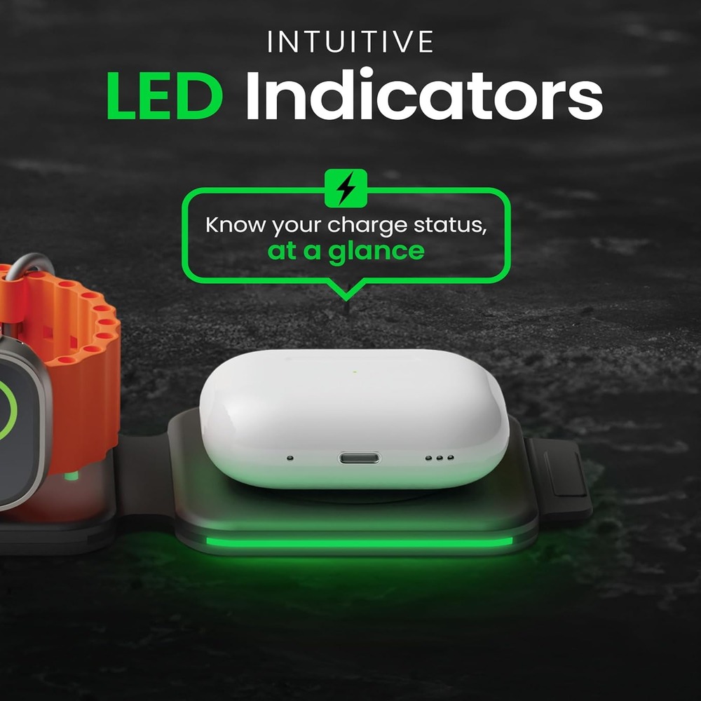 InfinaCore 3-in-1 Charging Station for Apple Devices - Travel Essentials- Magnetic Wireless Travel Charger - Foldable Charging Pad for Magsafe iPhones, AirPods & Apple Watch - Black (A4 INFINAFORE#1)