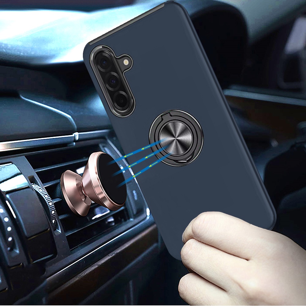 For Samsung Galaxy A37 CHIEF Oil Painted Magnetic Ring Stand Hybrid Case Cover - Dark Blue