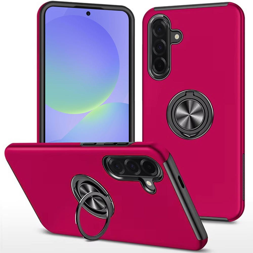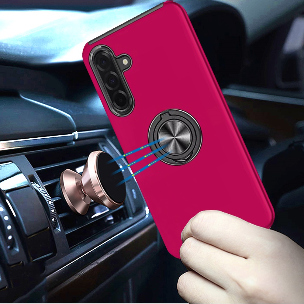 For Samsung Galaxy A37 CHIEF Oil Painted Magnetic Ring Stand Hybrid Case Cover - Hot Pink