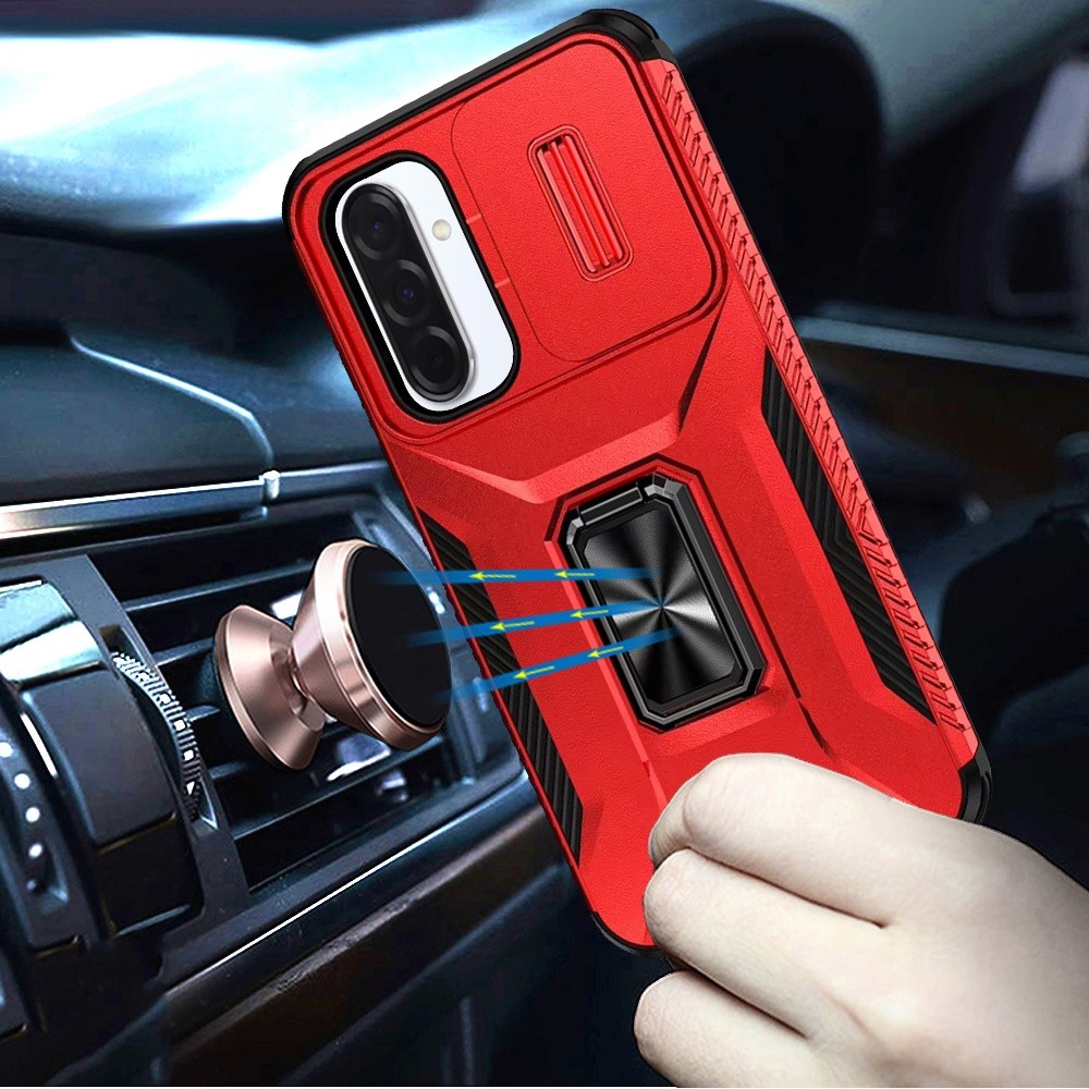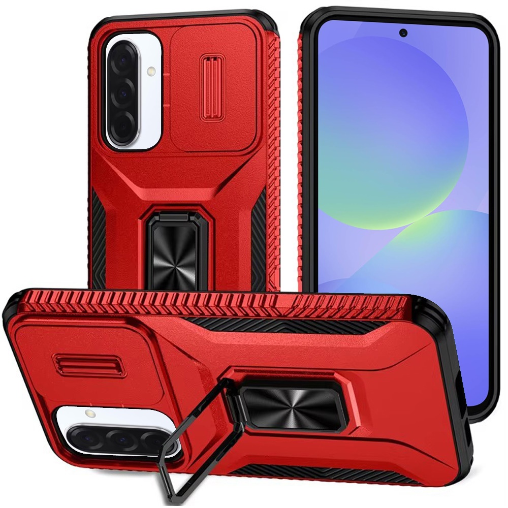 For Samsung Galaxy A37 Complete Magnetic Metal Ring Stand Camera Protection Hybrid - Red