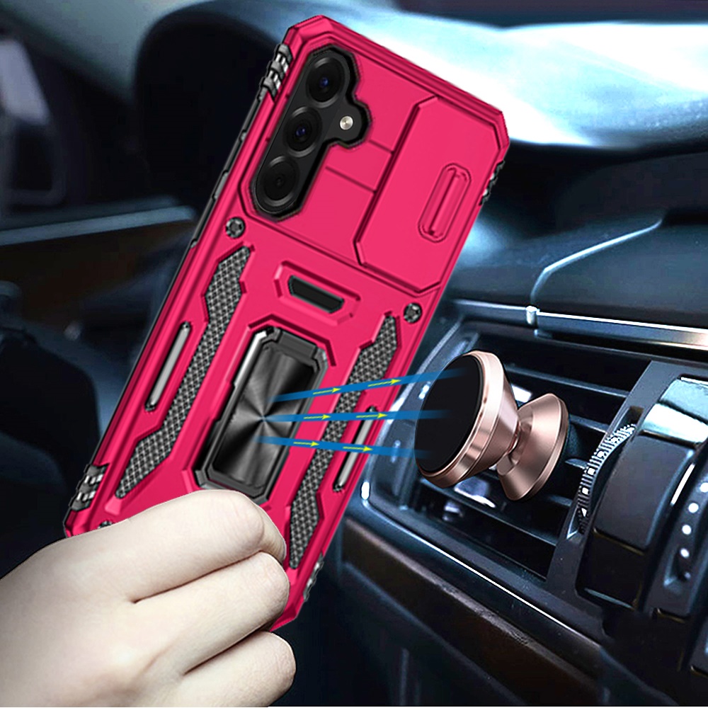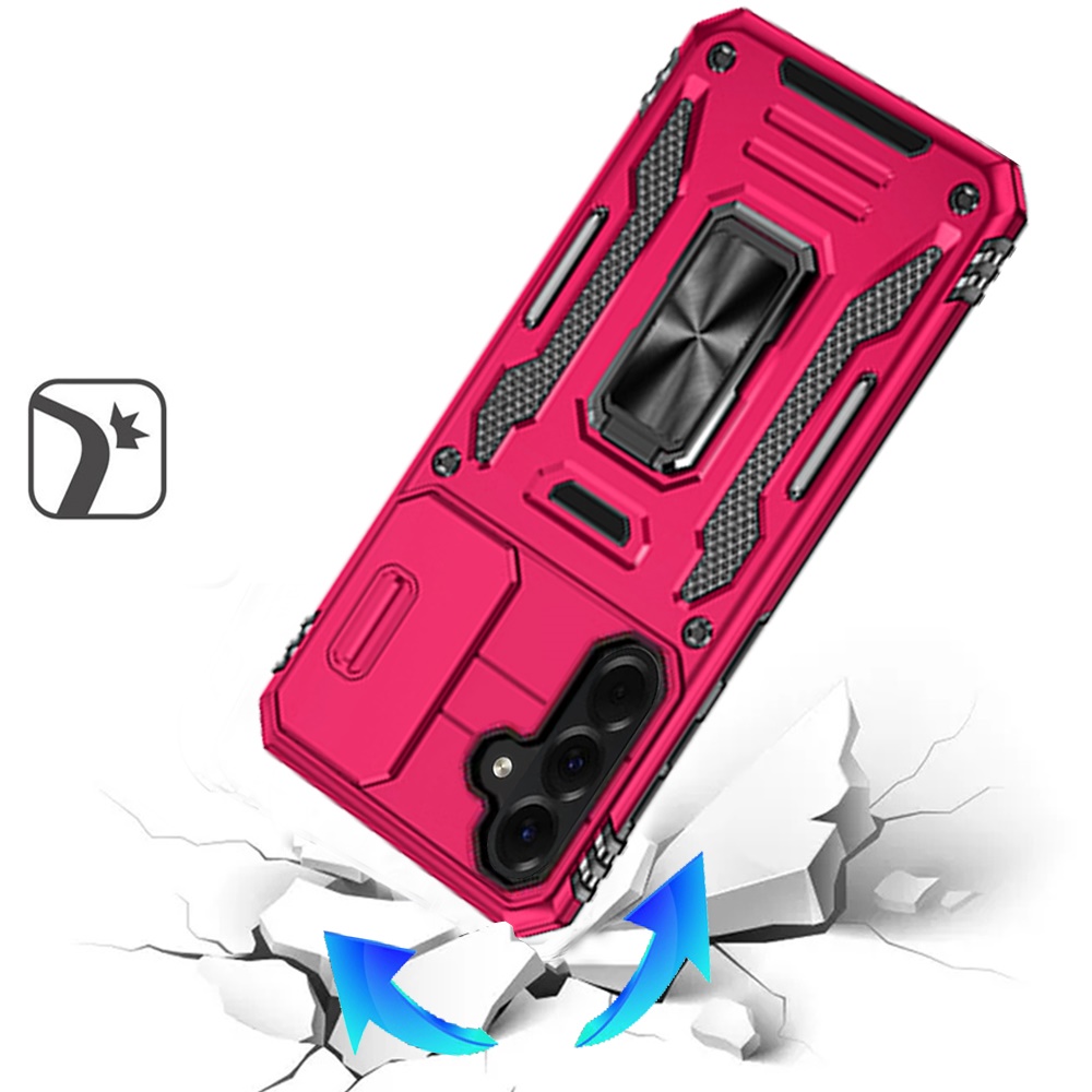 For Samsung Galaxy A37 Utter Tough Metal Ring Movable Camera Window Hybrid Case Cover - Hot Pink