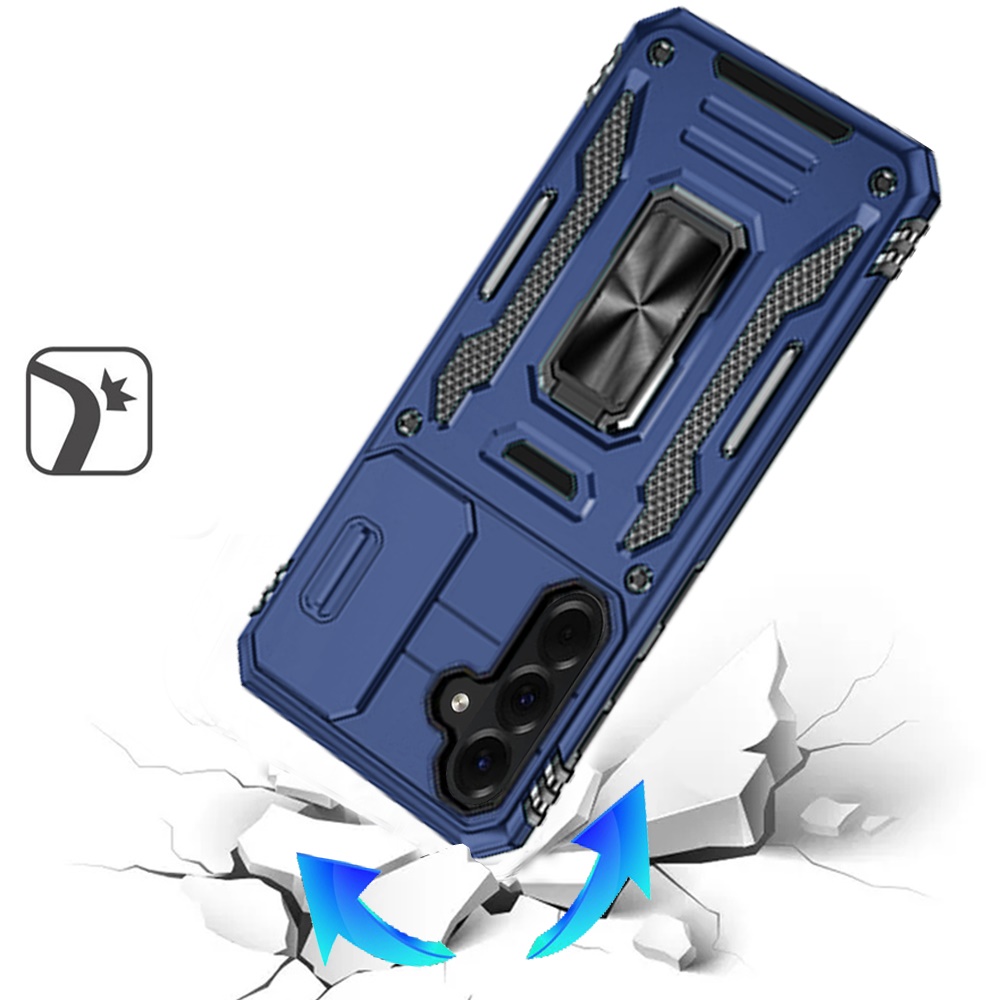 For Samsung Galaxy A37 Utter Tough Metal Ring Movable Camera Window Hybrid Case Cover - Navy blue