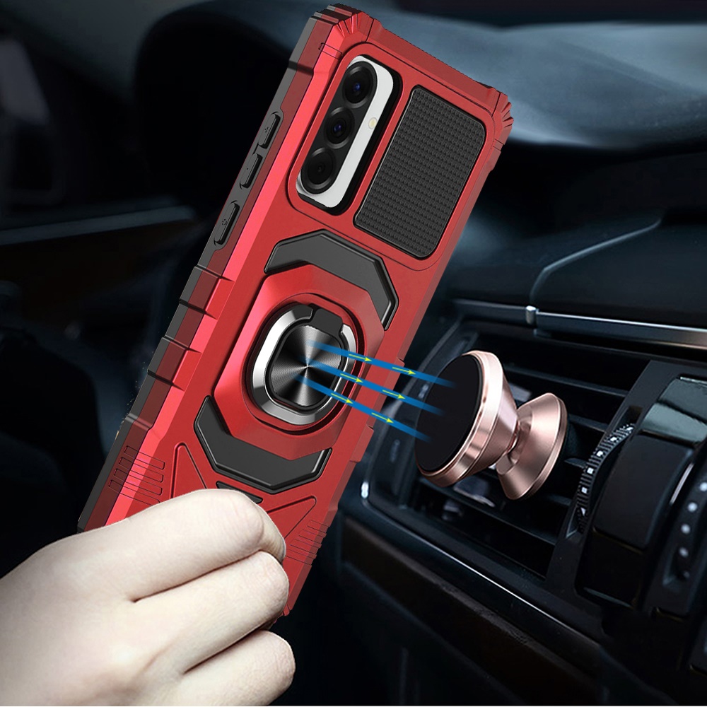 For Samsung Galaxy A37 Robotic Hybrid with Magnetic Ring Stand Case Cover - Red