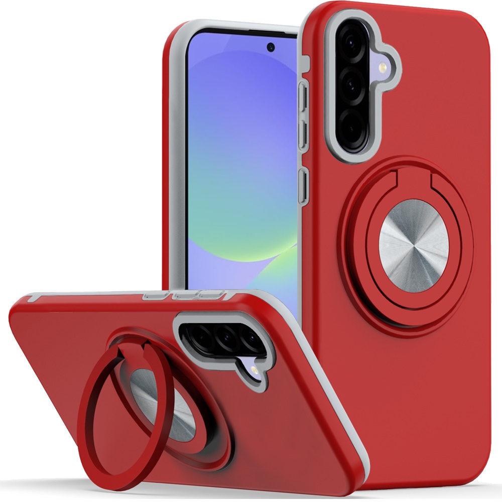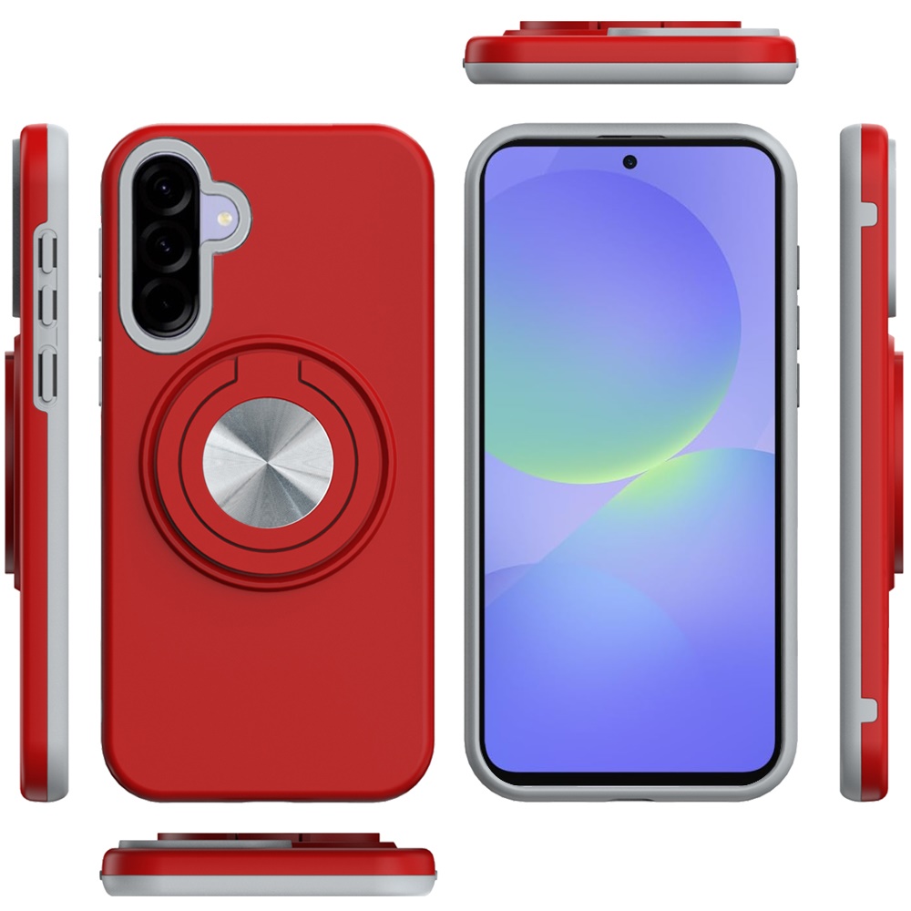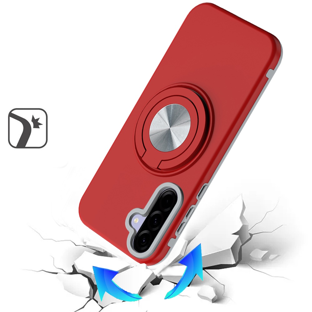 For Samsung Galaxy A37 Metal CD Pattern Matte Finished Hybrid with Rotational Ring [Car Mount Friendly] Case - Red