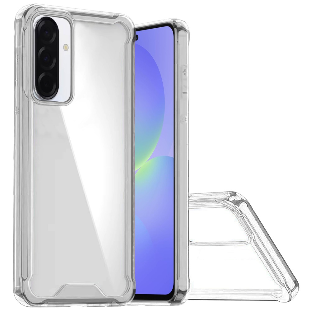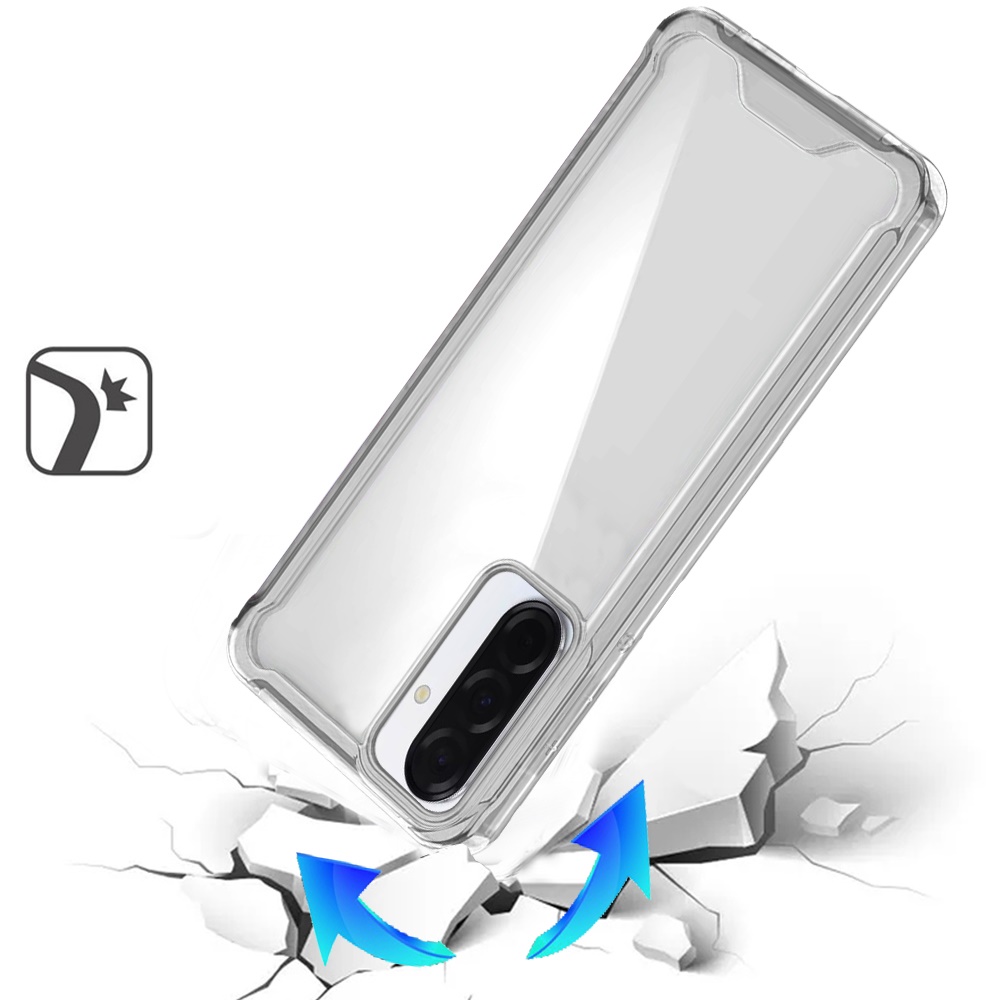 For Samsung Galaxy A37 Colored Shockproof Transparent Hard PC TPU Hybrid Case Cover - Clear/Clear