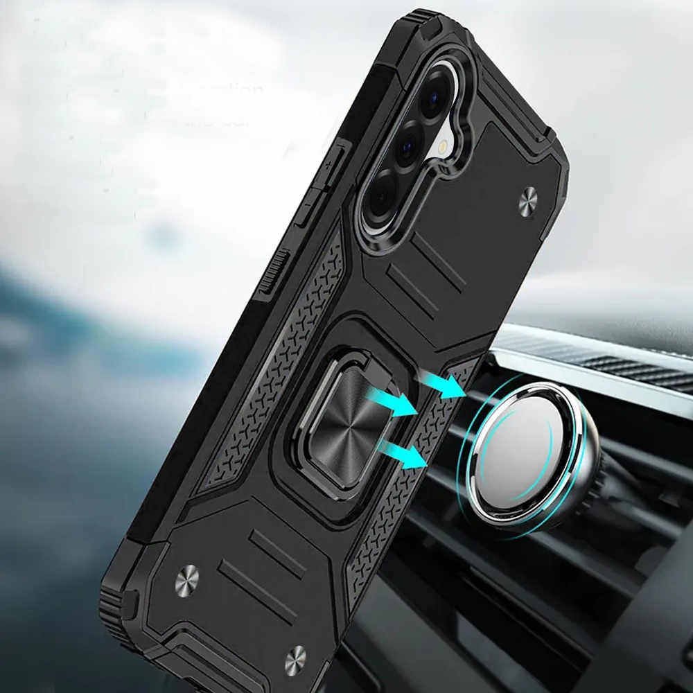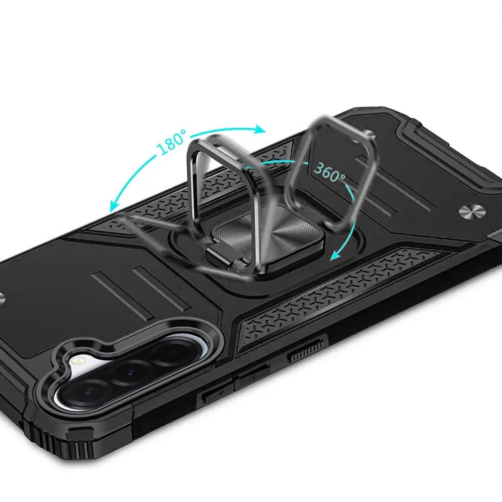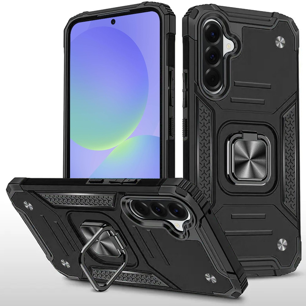 For Samsung Galaxy A37 Robust Magnetic Kickstand Hybrid Case Cover - Black